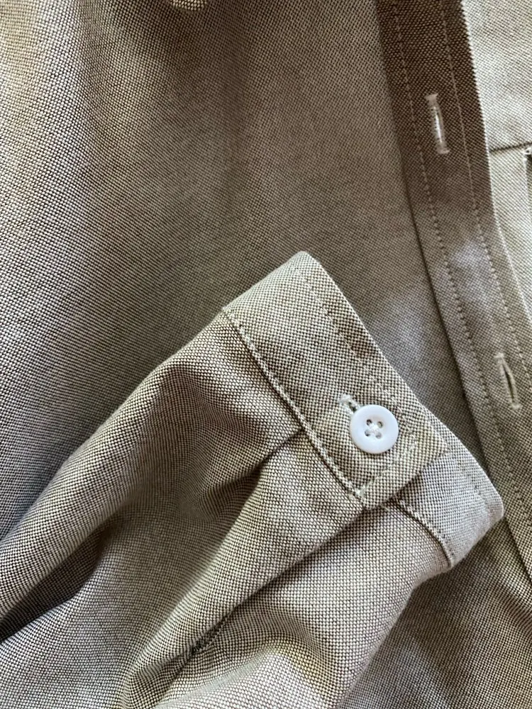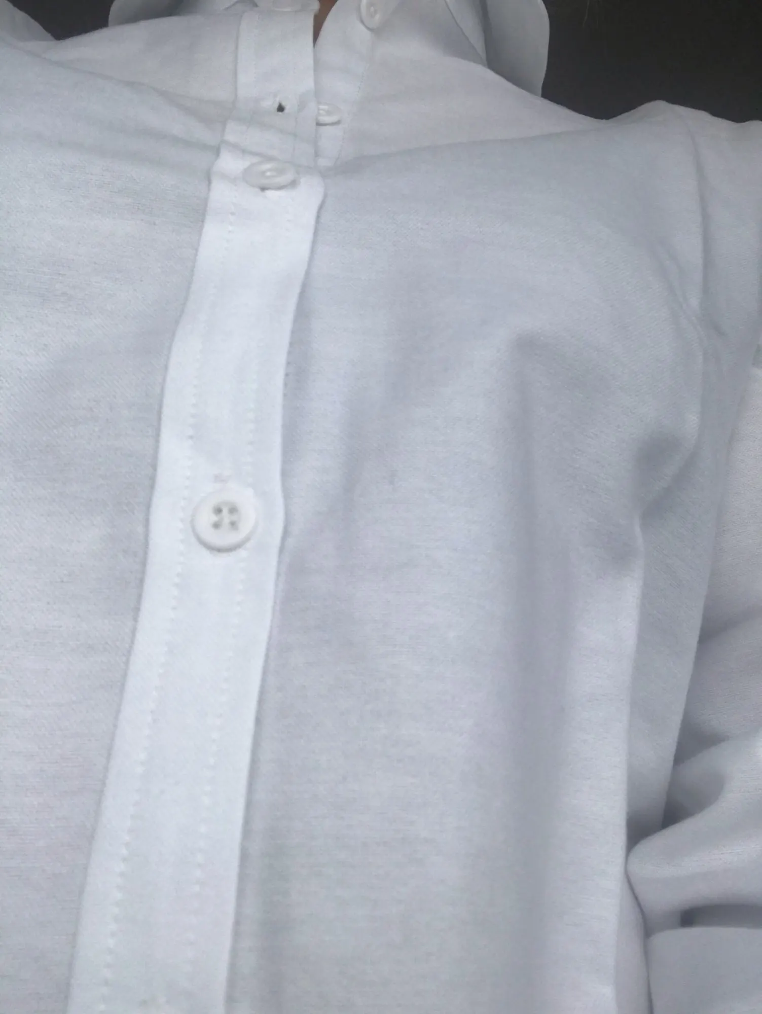 Рубашка не белоснежная. Ткань как погода, грубоватая. Но что то в этом есть.