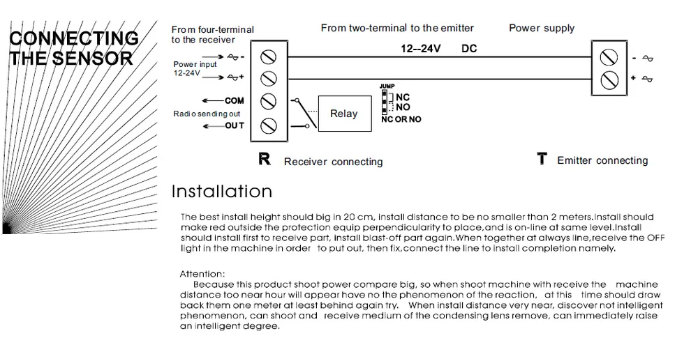 датчик проверил на коротком растоянии, работает четко. Намучился при подключении к автоматике ворот по причине того, что перемычку NO/NC на датчике поставил на NO, а на блоке управления с NO не работало и наоборот. Догадался поставить на датчике NO, а на блоке NC и бинго. Может это только на моей автоматике. По схеме непонятно как подключить, в нете нашел, что на com датчика тоже нужно подать минус.