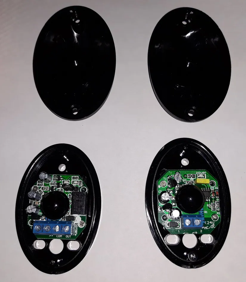 Отличные датчики. Прекрасно выглядят. Через полупрозрачный корпус тускло краснеет светодиод индикатора питания. При срабатывании внутри загорается зелёный светодиод. Но его снаружи не видно. Два режима. Нормально замкнутые контакты выхода и нормально разомкнутые. С виду очень качественные. Могут, судя по инструкции работать и с 12, и с 24 вольтами. Мои приводы ворот 24 вольта. Датчики проработали пять дней. Затем стал всё время гореть зелёный светодиод и датчик на пересечение луча больше не реагирует. Внешне ничего не сгорело. Но проработал слишком мало. Хотя бы месяц - другое дело. А тут всего пять дней. Жаль.
