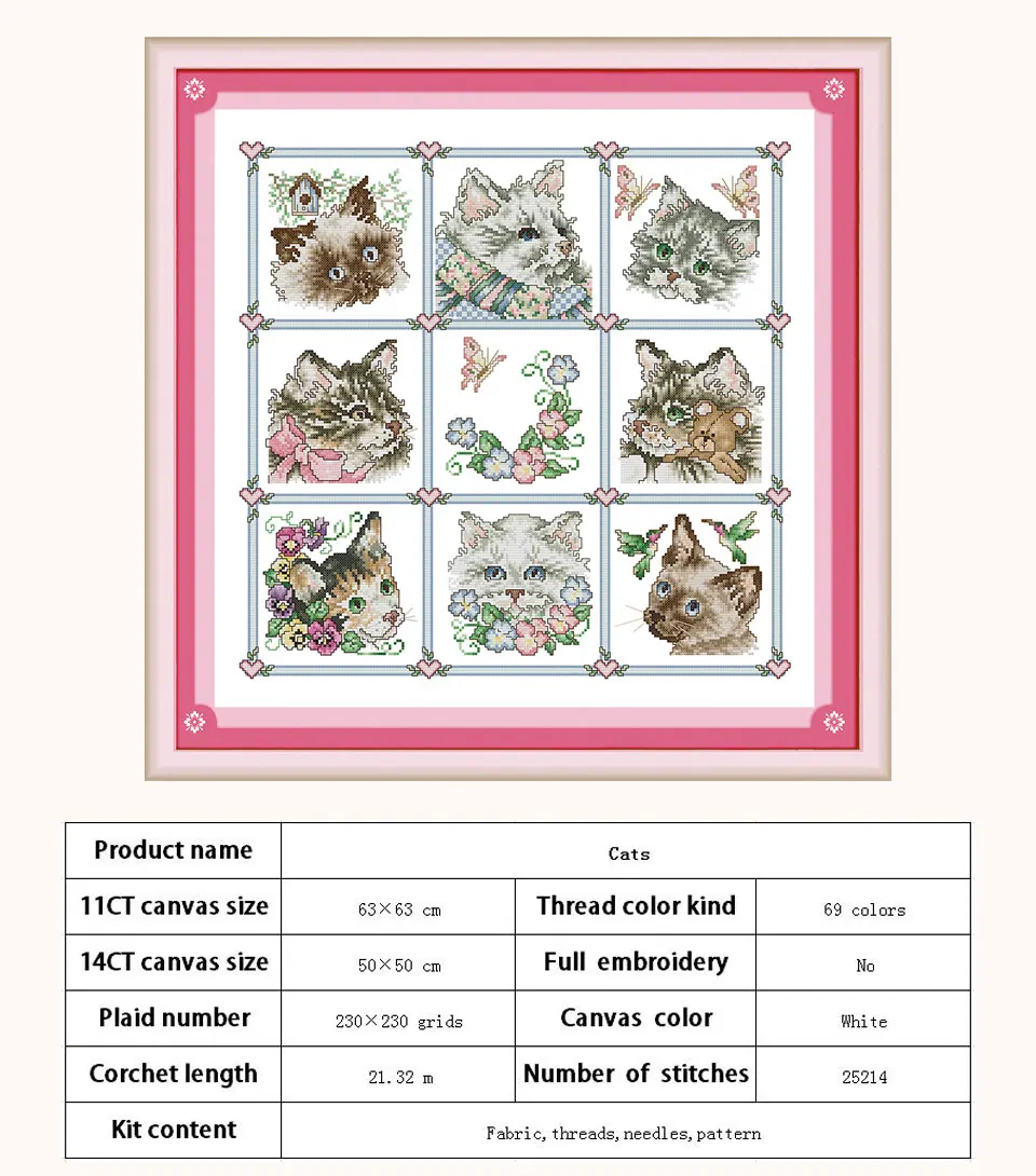 Вышивка крестиком 11CT 14CT с изображением семьи кошек, Набор для вышивки крестиком, оптовая продажа, Набор для вышивки крестиком, вышивка