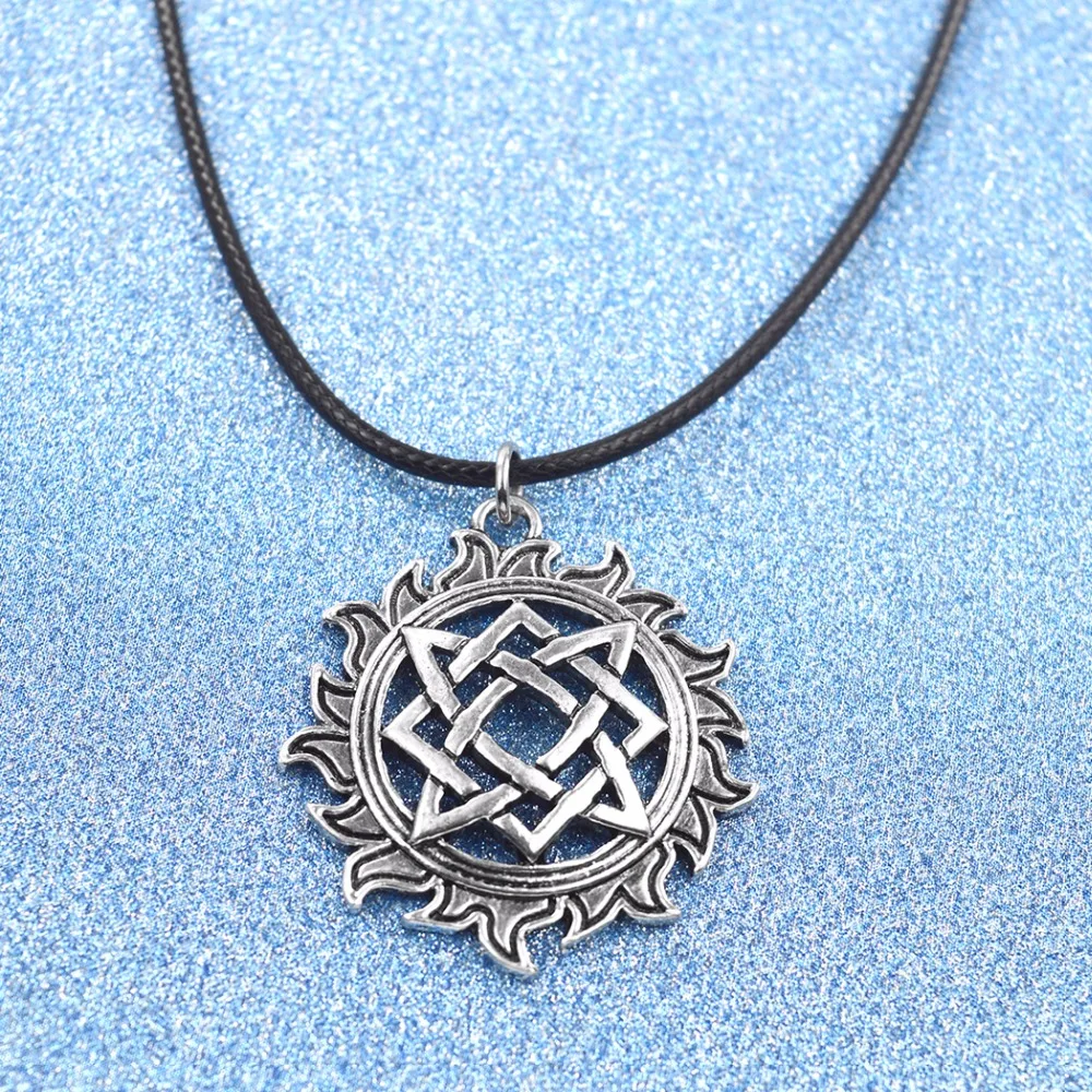 1 шт. кожаное ожерелье ювелирные изделия для женщин античное серебро Svarog квадратная подвеска талисман Pagan ожерелье лучший друг Прямая поставка