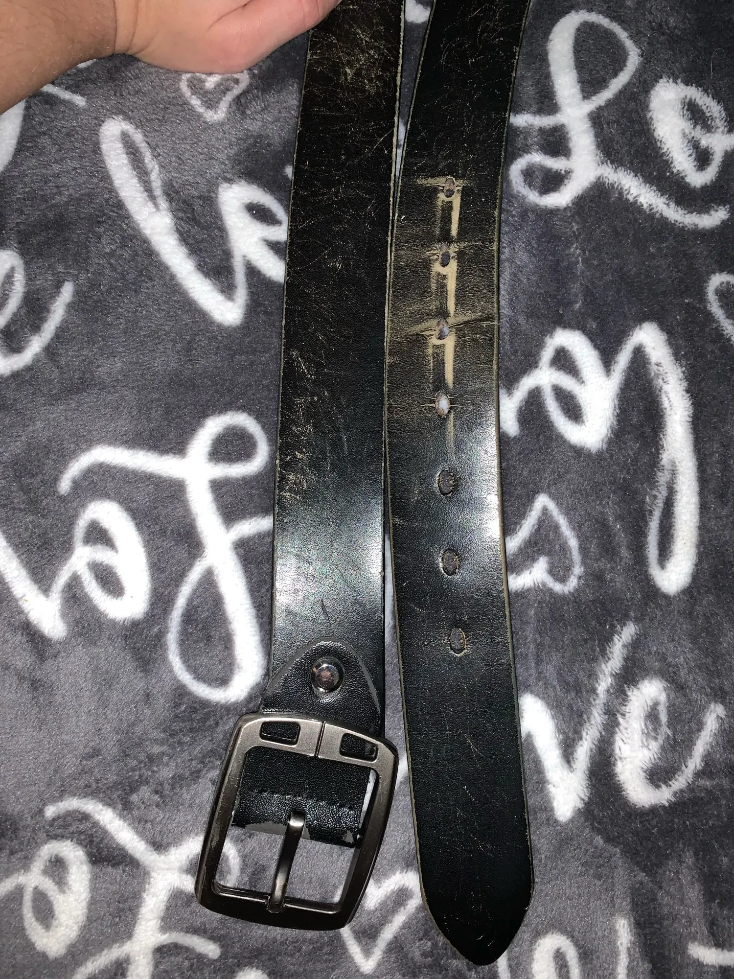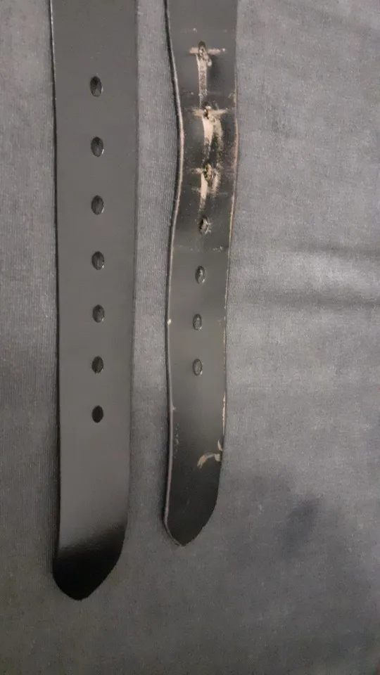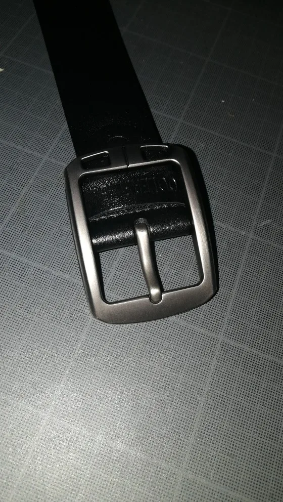 Заказываю уже второй такой ремень (цвет только другой на этот раз). Посылка пришла очень быстро(заказал 15.10 - получил 05.11, по Украине шла 6 дней!!!) Ремень полностью соответствует описанию. Я незнаю, что это за тип кожи, но качество хорошее. Предидущий ремень (на фото он бордовый) я ношу вот уже 2 года почти, и этот материал не порвался , не разлезся и тд. Ремень из крепкого материала. На фото я показал, все что случилось с ним за два года - затерся местами и немного расстянулись отверствия куда вставляется язычок фиксатора пряжки. Можно это закрасить наверное, но цена нового сопоставима с тем, чтобы в мастерской восстановить старый. Вообщем Рекомендую !!!