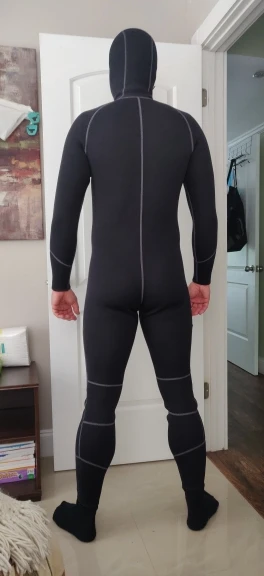 к костюму претензий нет, он классный, мы брали для серфинга, боялись, что серфить в дайверском костюме будет нереально, но оказалось более чем с передней молнией и единым капюшоном очень даже удобно, я 93 185 размер максимальный подошёл отлично, молния мягкая доску не царапает, капюшон немного налазил на глаза, но я его чуть чуть обрезал, тепло держит хорошо в 6и градусах катались часа полтора. Меня конечно немного подвёл продавец отправив посылку не с Москвы скоростной доставкой, а с Китая как бы тоже быстрой, но из всех товаров что я заказал в черную пятницу, пришёл последним , доставка заняла месяц и почти две недели, даже товары которые были с доставкой супер экономи дошли на пару недель раньше....