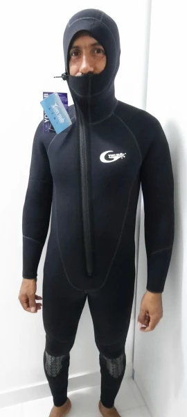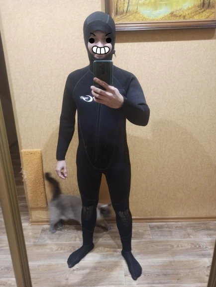 Нормальный дайверский костюм. Размер на мой рост 173 и вес 70 подошёл. Немного вначале погружения попадает вода, но это нормально, так у всех мокрых костюмов, главное, чтобы сидел плотно, тогда будет не холодно. В отличии от охотничьего одевается без шампуня, можно "отлить" просто расстегнув молнию и надеюсь, что не так быстро сядет, как мягкий охотничий костюм. Испытания проводил при температуре воды +12 градусов и воздуха +15, плавал 3 часа было комфортно.