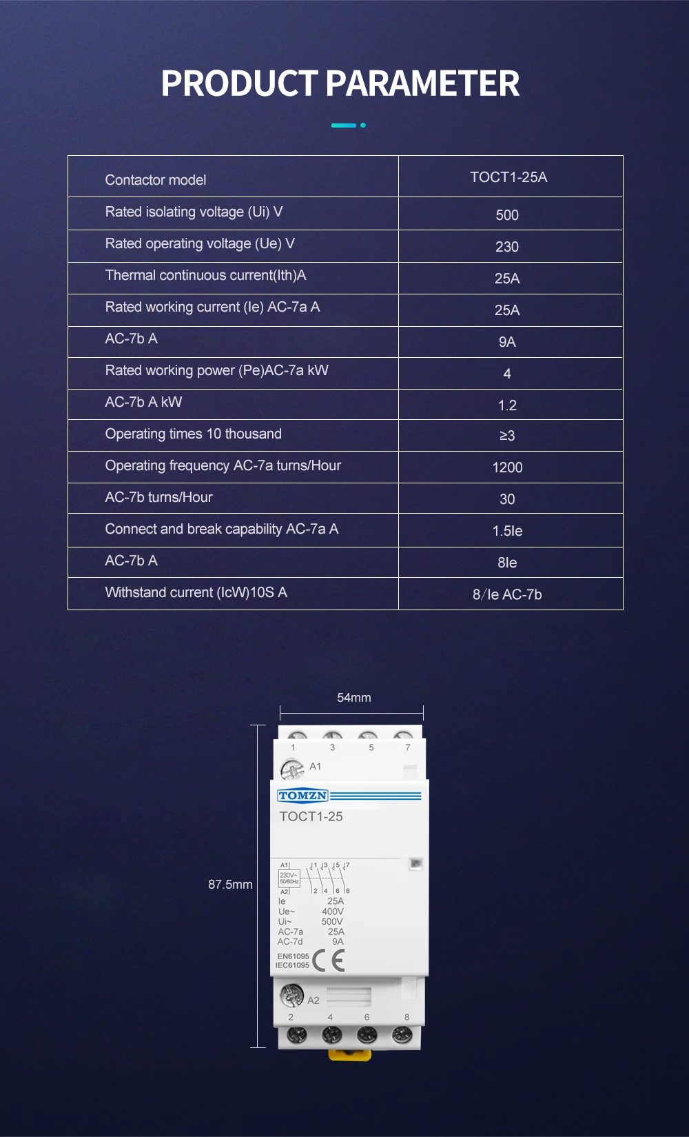 TOCT1 4P 25A 220 V230 V 5060HZ din-рейка бытовой ac модульный контактор 4NO