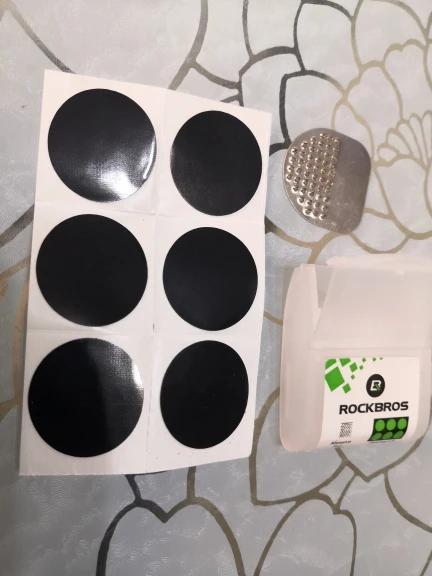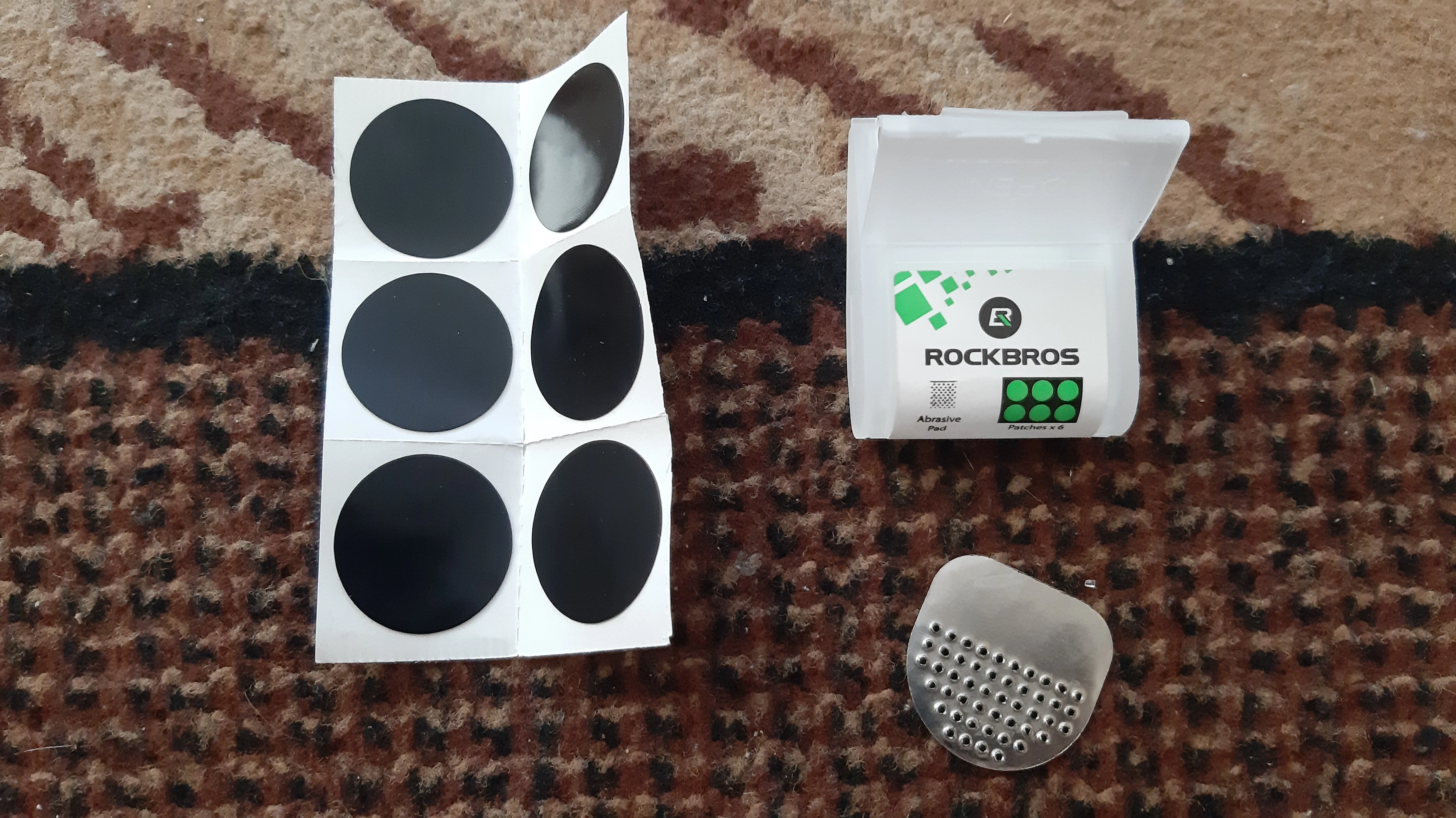 Всё отлично, довольна. Пользовалась пока что пару раз. Велик у меня простенький. Латки в диаметре по 25мм, в наборе их шесть штук. Место прокола, обработала металлической теркой из набора. Когда дома латала, то обезжиривала поверхность перед поклейкой (на всякий случай), а когда в дороге ремонтировала, то лепила заплатку без обезжиривания. Клей дополнительно не добавляла. Латки - самоклейки, уже с клеем. Нужно только хорошенько зачистить камеру и сильно прижать латку. Держатся латки вроде нормально. Вес набора с коробочкой - 11г. Заказ выслали через день, в пупырчатом почтовом белом пакете. Посылка отслеживалась на всём пути и доехала за три недели. Покупала круглые латки. На выбор есть: круглые и квадратные. Квадратные вроде прозрачные и у них коробочка вроде попроще и поудобней. Прозрачными никогда не пользовалась, вот и взяла по старинке круглые (черные).