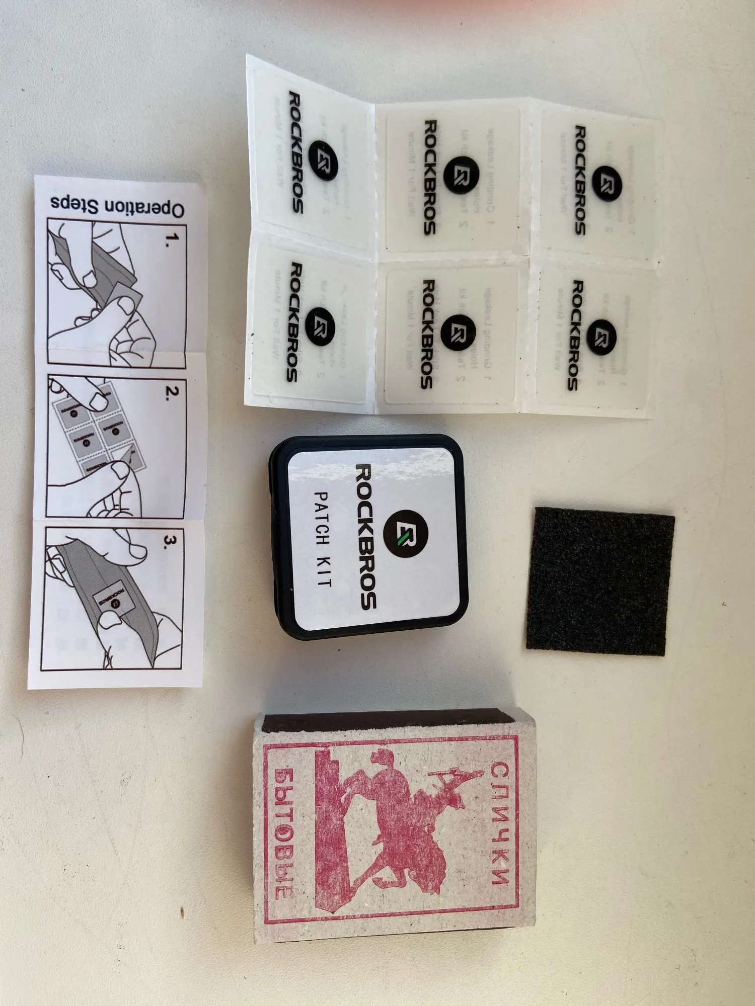 Все соответствует описанию, по качеству заплаток пока оценить не могу, но выглядит все аккуратно. SOS набор для поездки. Продавца рекомендую, доставка почта России. The rescue kit is matching with the specification, so It looks likes solid and good tool, thankfully I wouldn’t have a case to prove it. SOS tool for the bike. I recommend this Seller; shipping via the Russian Post