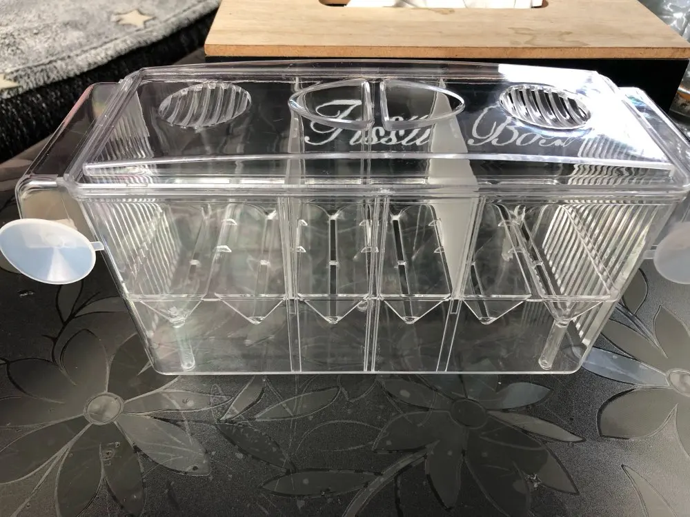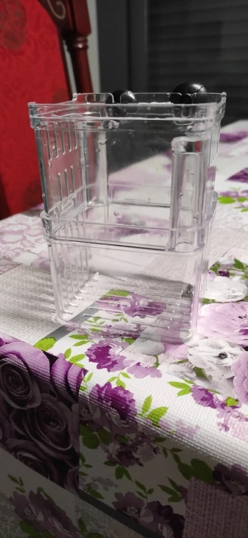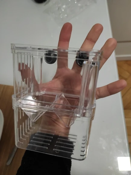 Удобная конструкция отсадника для разведения мальков. Хороший пластик, есть крышка. Снимается внутренняя перегородка. Из недостатков слабые присоски, одну пришлось заменить. В Украину доставлено за 2 месяца укрпочтой.