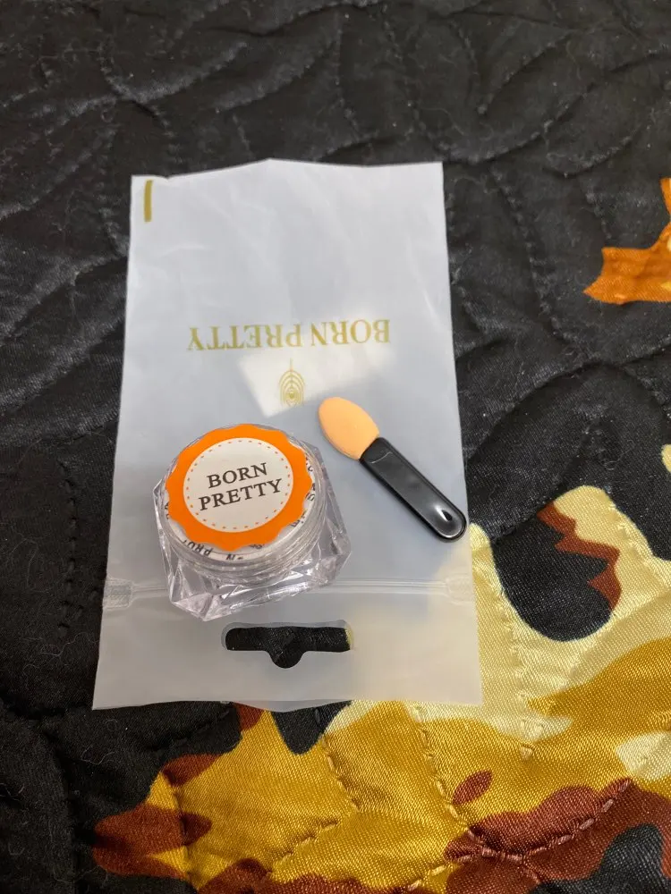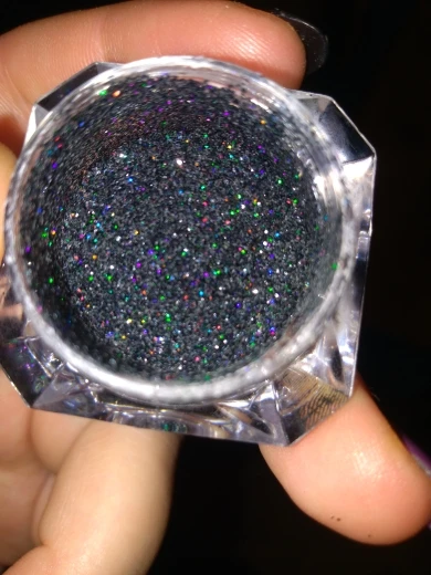 не такой мелкий как на картинке. Очень плохо наноситься, решила сыпать на ноготь. долго клиенты с ним не ходят быстро затираеться...