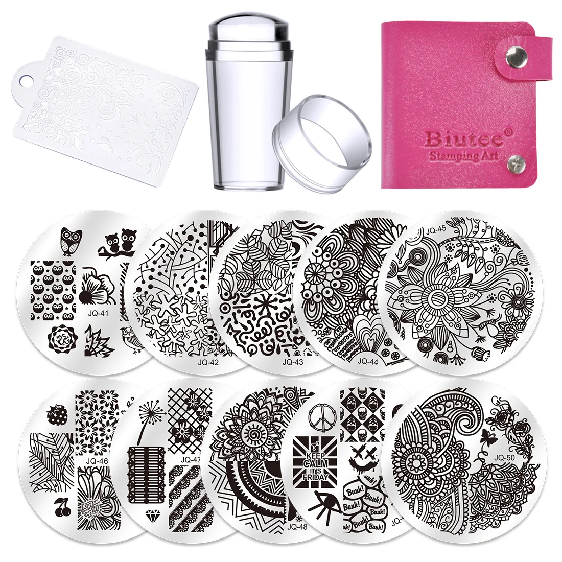 Размер10Pcs Nail Plates +1 Stamper + 1 Scraper