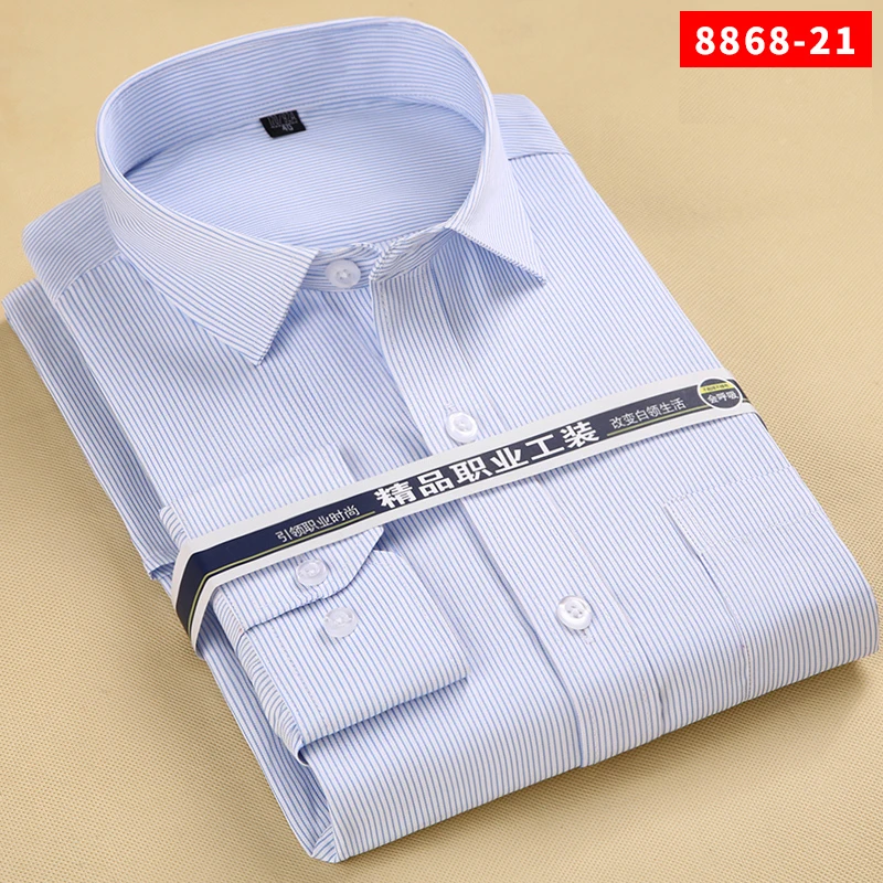 Мужская классическая рубашка в полоску, белая однотонная приталенная деловая рубашка с длинным рукавом, большие размеры