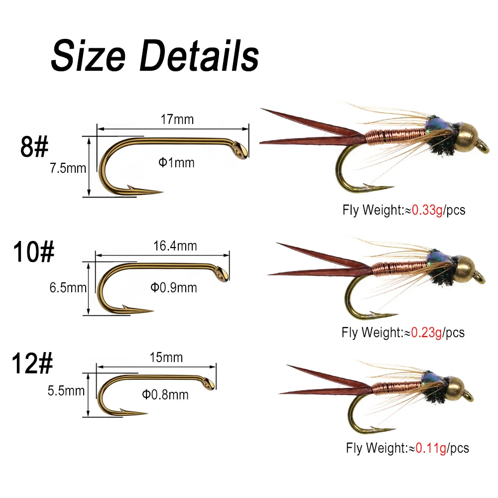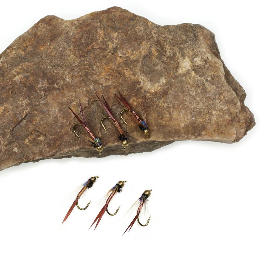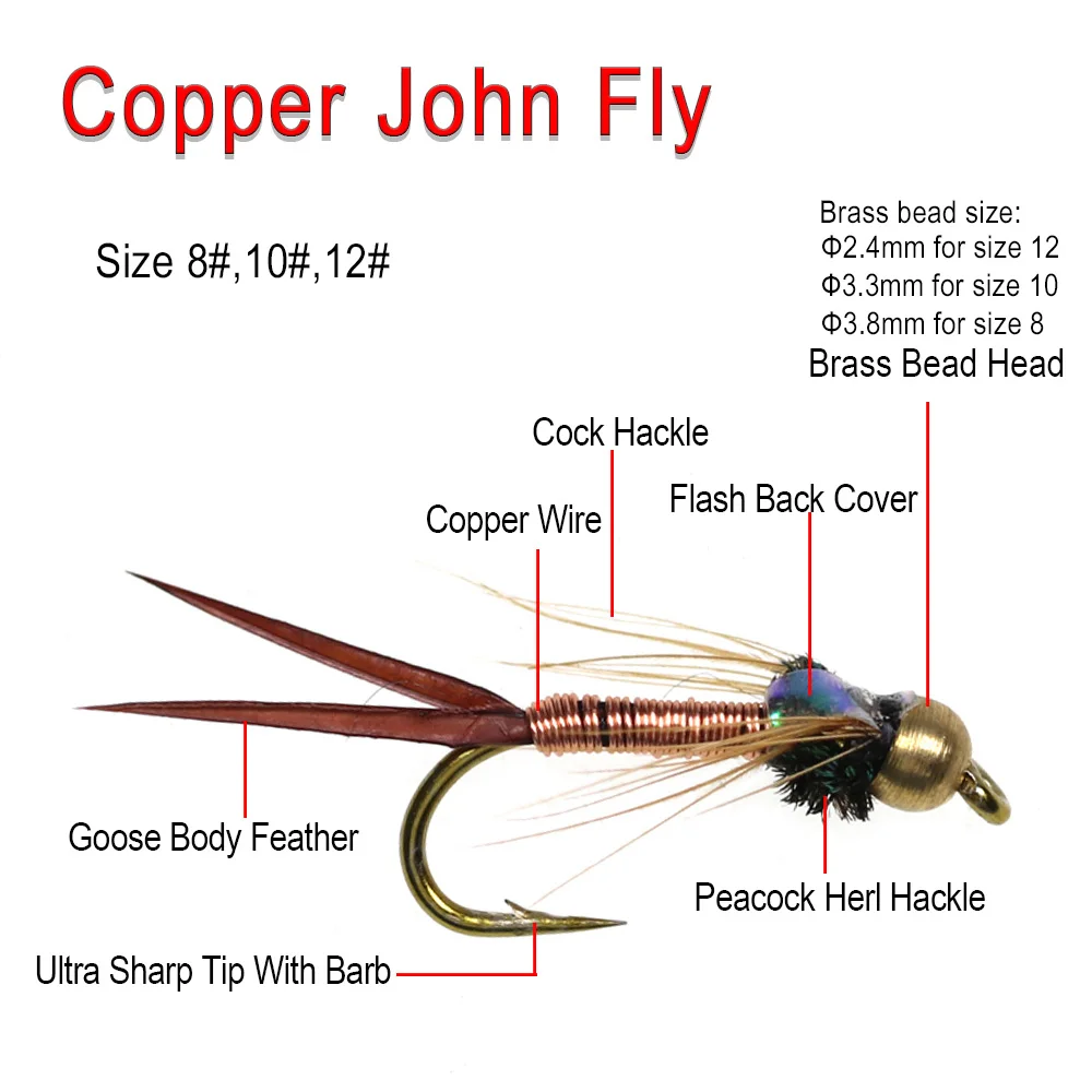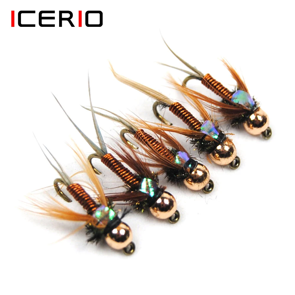 ICERIO 12 шт. медный Джон муха латунная голова Нимфа камень муха для ловли форели приманка #8 #10 #12