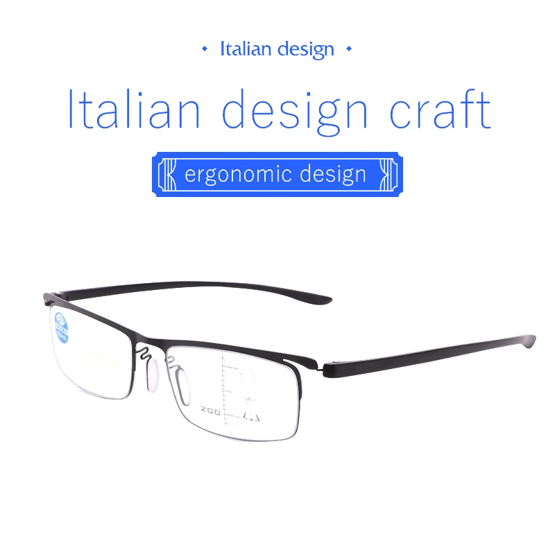 Многофокальные мужские очки для чтения, прогрессивные бифокальные с защитой от синего излучения, металлические полуоправы, очки для дальнозоркости для женщин и мужчин Tr90 Gafas 1,0 1,5