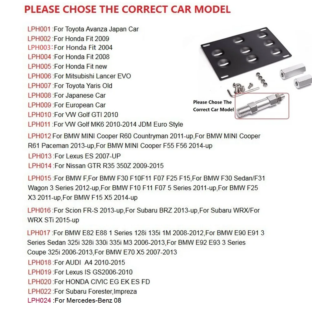 Tansky буксировочный крюк номерной знак переместите Монтажный кронштейн держатель черный для BMW для Toyota для Honda Для VW для Nissan TK-LPH