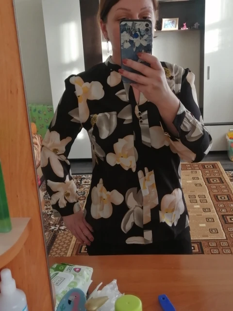Очень красивая блузка с цветочным рисунком, черная шифоновая блузка с необычными пуговицами, быстрая доставка, отличное качество, отличный продукт, рекомендуемый продавцу и магазину, действительно красивая блузка, настоятельно рекомендуем этот магазин и товар спасибо