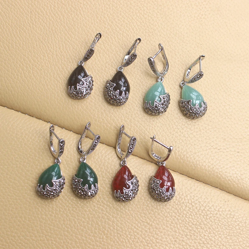 Женские серьги с камнем, черные стразы, 4 цвета, винтажная Капля воды