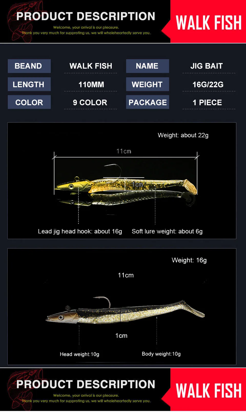 WALK FISH 1 шт. Мормышка головы рыбы Тонущая Рыболовная Приманка 11 см22 г пресная соленая вода натуральный живой реалистичный тело джиггинг Мягкая приманка
