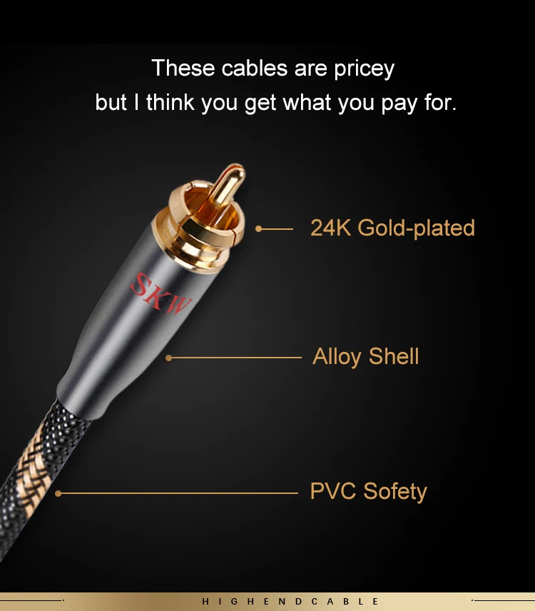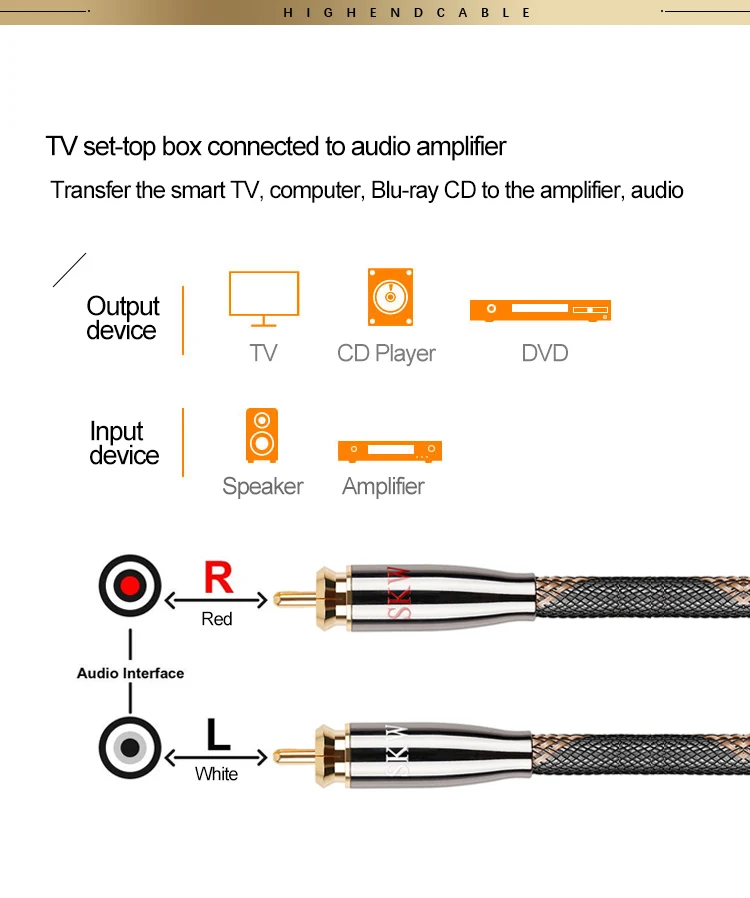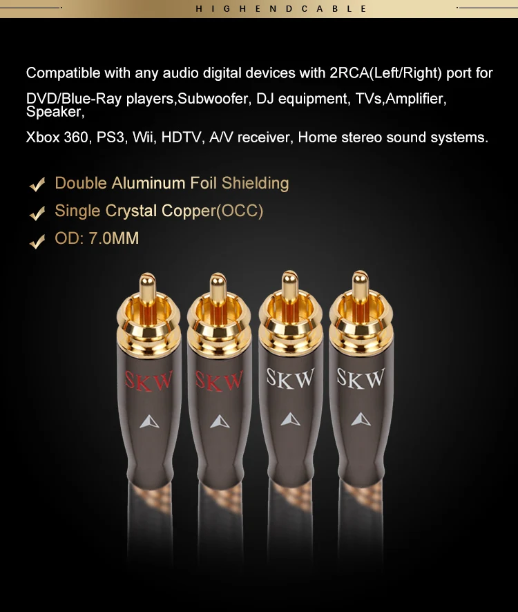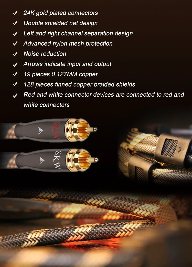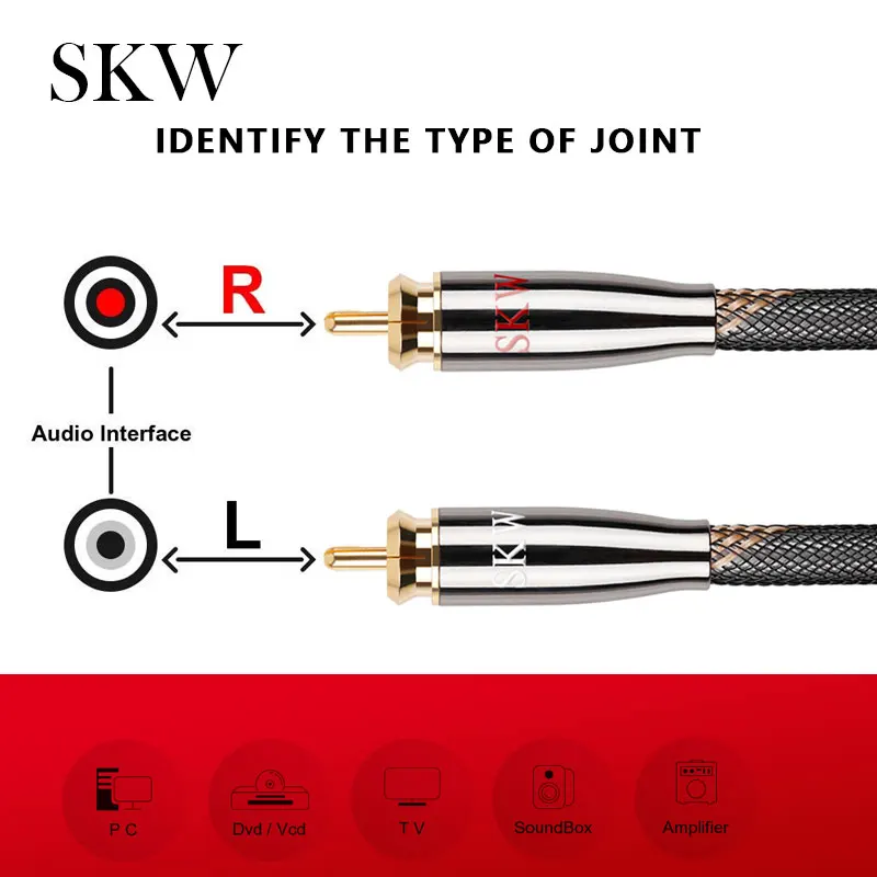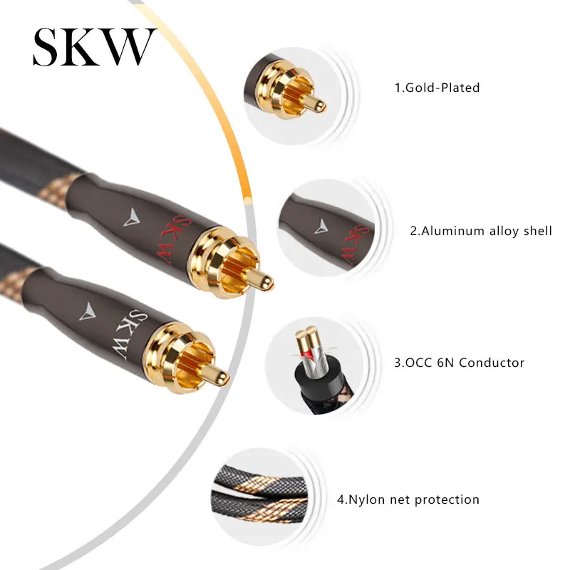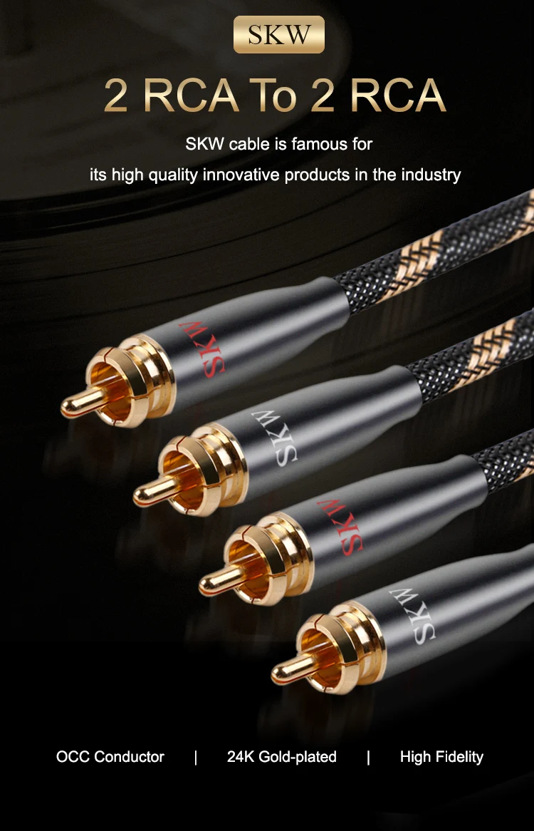 Аудиокабель SKW Hi-Fi 2RCA на 2 RCA штекер-штекер OCC проводник нейлоновый сетчатый корпус для DVD CD проигрывателя подключения усилителя