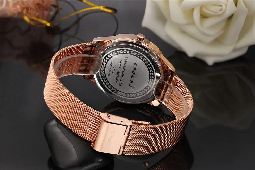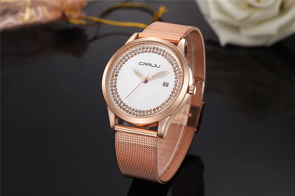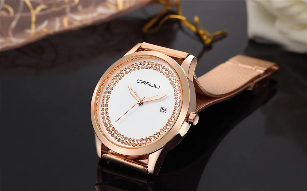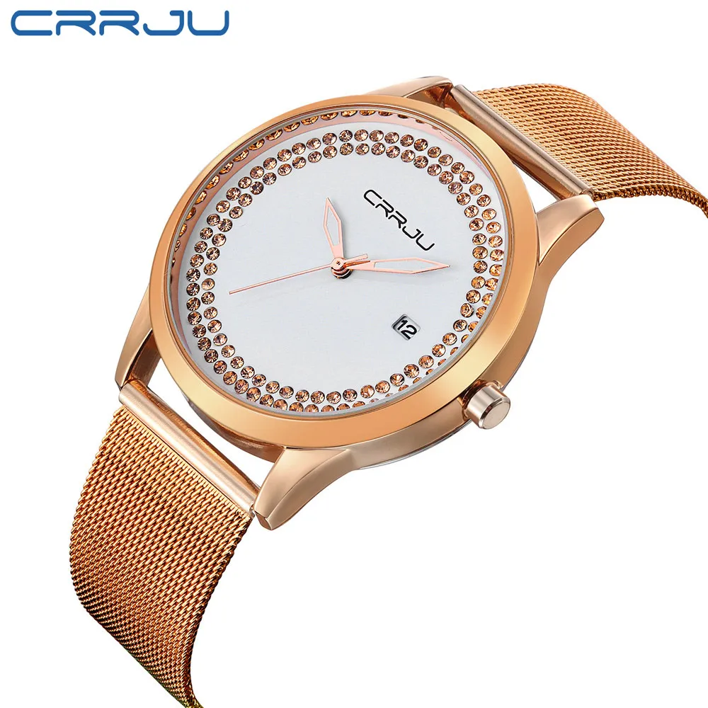 Часы CRRJU женские кварцевые, брендовые Роскошные модные, простые стильные элегантные повседневные наручные, из стального сплава, золотистые