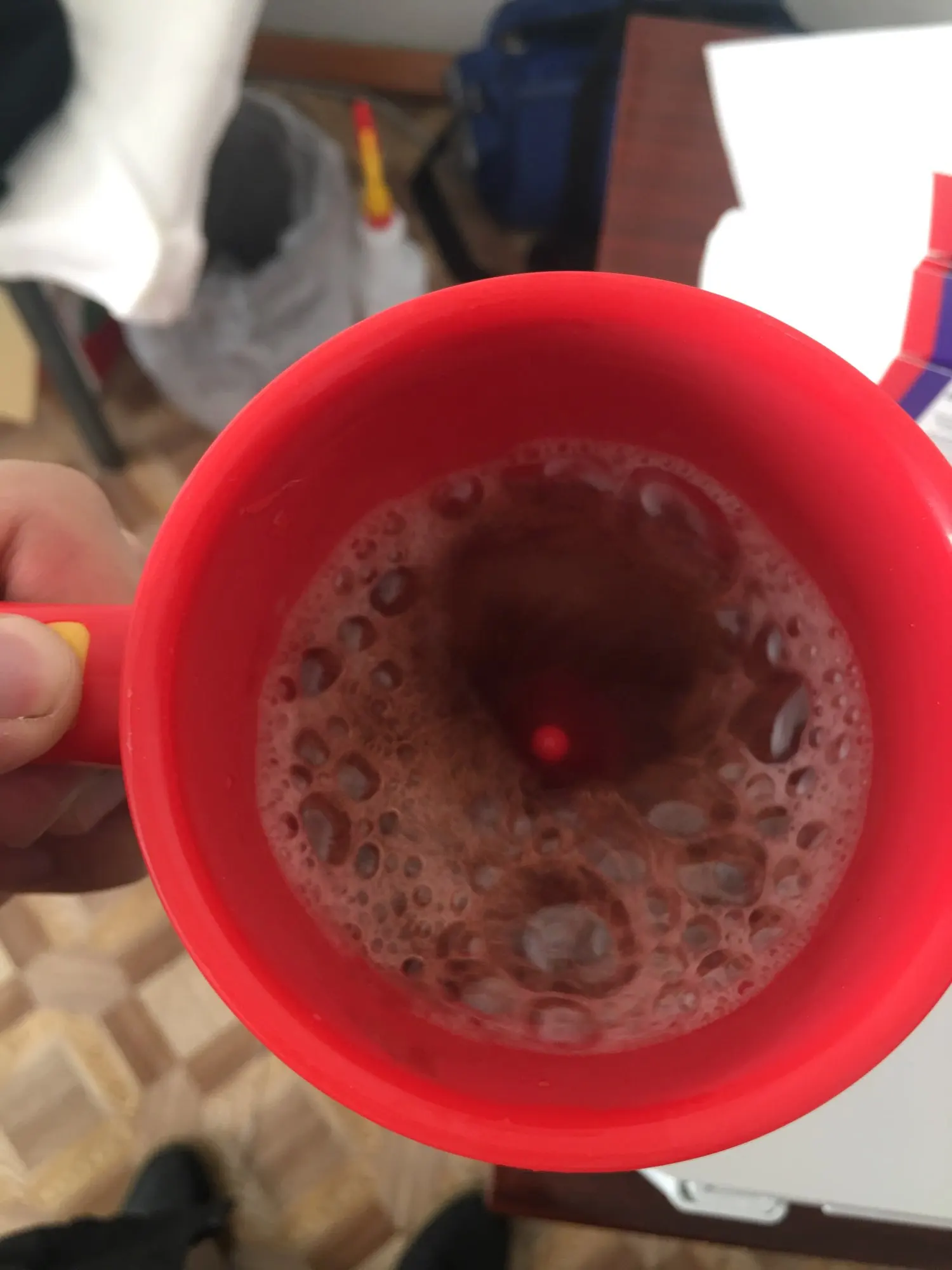 взяла отцу, очень понравилась.даже тепло держит какое то время, двойные стенки.у него заболевание,мешать почти не может.а тут нажал кнопочку и размешал сахар.очень удобно