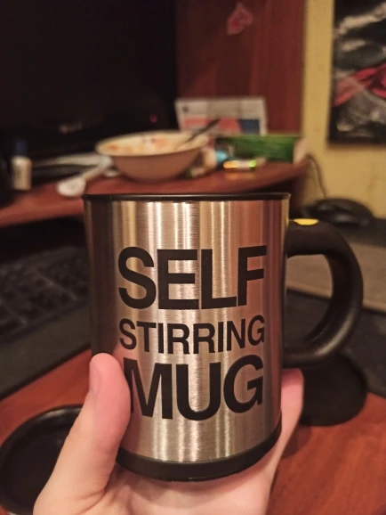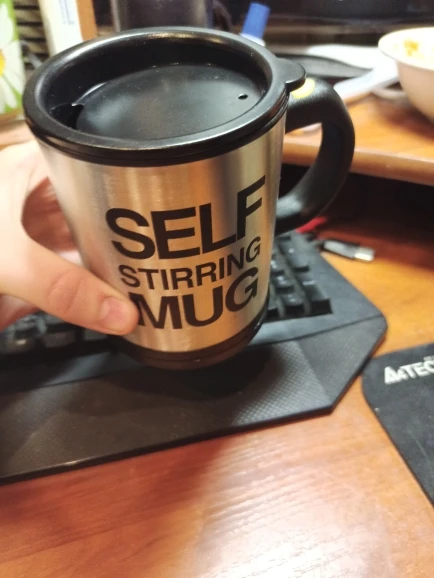 Купил другу. Он очень доволен, так как ленится мешать гору сахара. Мешает Мольер (как на картинке воронка), только батареек в кружке нет. За свои деньги отличная кружка. Если хотите подарить в подарок то учтите что кружка из пластмассы смотрится дёшево, не каждый оценит.