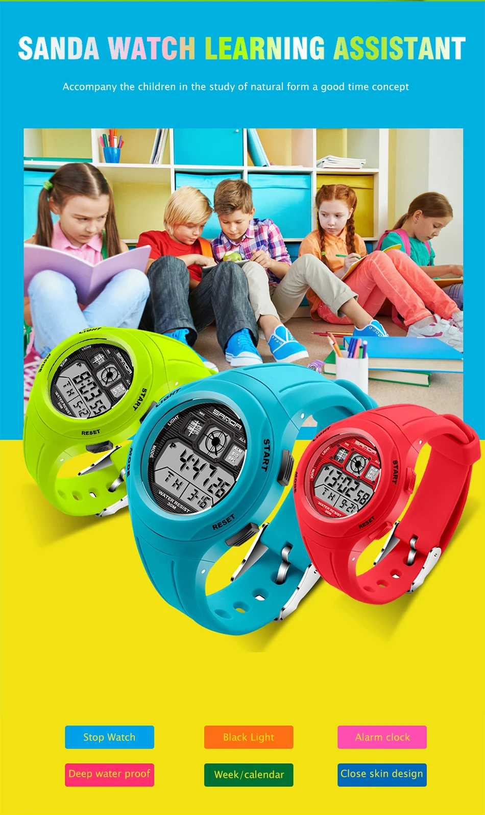 Часы детские наручные SANDA, Цифровые многофункциональные водонепро...