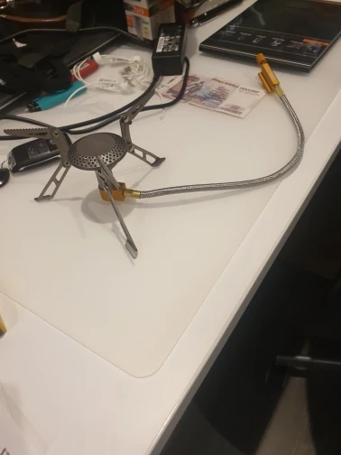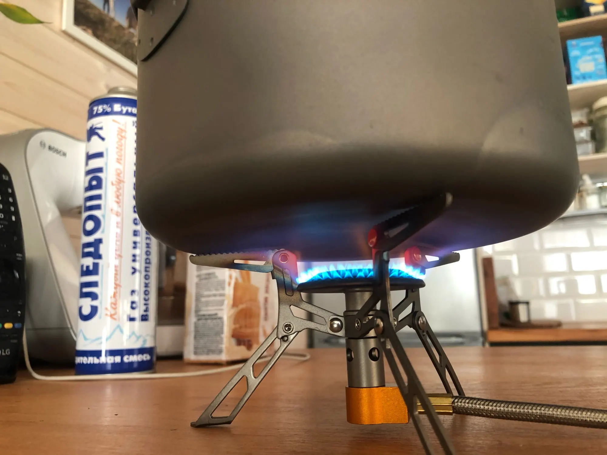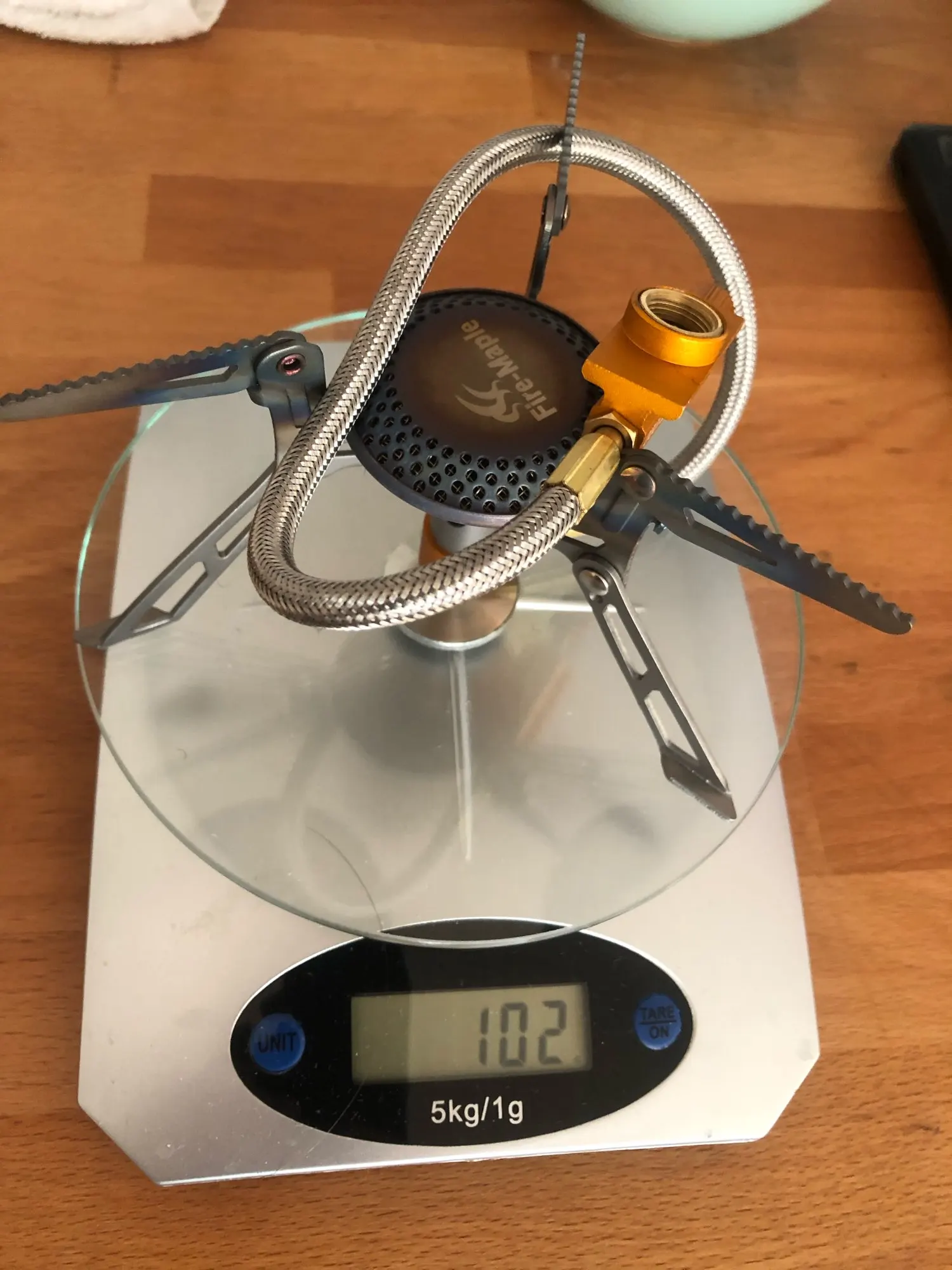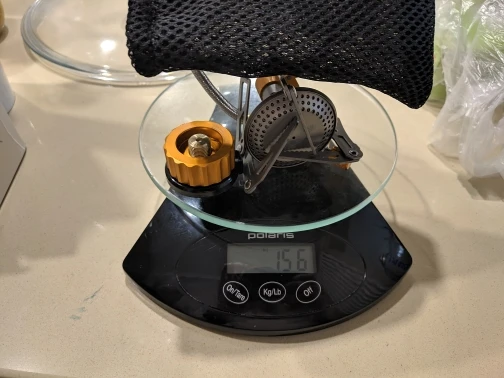 Вес без чехла 102 гр, с чехлом 111гр. Кипятил дома 1 литр воды в ковшике с крышкой, температура воды 23 градуса. Вскипел за 7:05 на максимальной мощности, газа "чингисхан" ушло 13 грамм, считаю, что хороший результат Стоит ровно, не шатается, всё в порядке