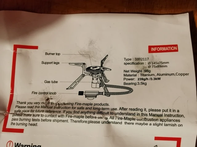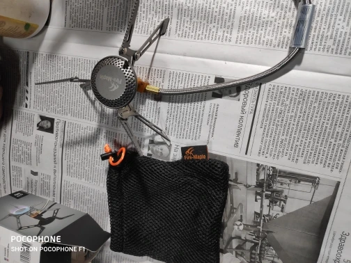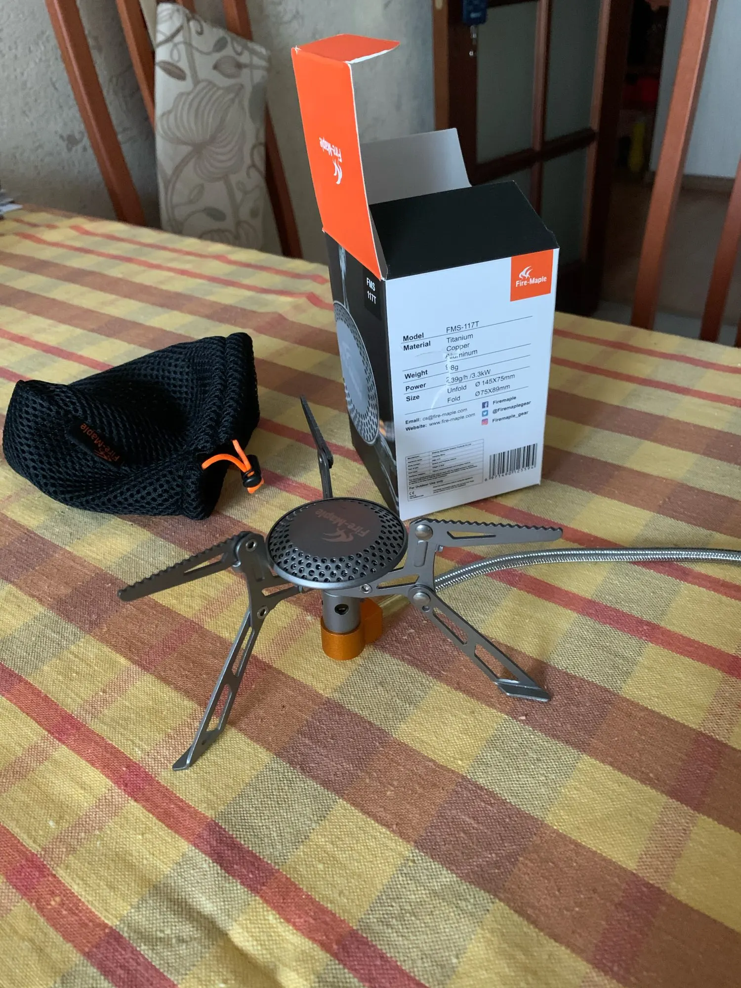 Коробка красивая. Продавец общительный. Конец. :D шутка. Доставка 12 дней в Запорожскую область Новой почтой. 746.88грн по распродаже 11.11, хвала Алиэкспрессу! Коробка пришла примятая, но все внутри целое. Меня смущает немного то, что надписи Ti 98g нет наверху, которая есть на коробке. Наверное, поэтому вес 104г, обидно! А можно было бы взять ещё лишние 6 грамм туалетной бумаги :D. Немного туговато крутится ручка открытия газа. Четверти оборота не хватает до 720 градусов регулировки. Можно регулировать подачу для готовки. Горелка выглядит хрупкой, надеюсь, прослужит долго. Перел использованием нужно протереть везде от синтетических волокон, которые сыпятся их чехла для переноски. Дополню отзыв, если что-то пойдёт не так, либо если появятся нюансы.