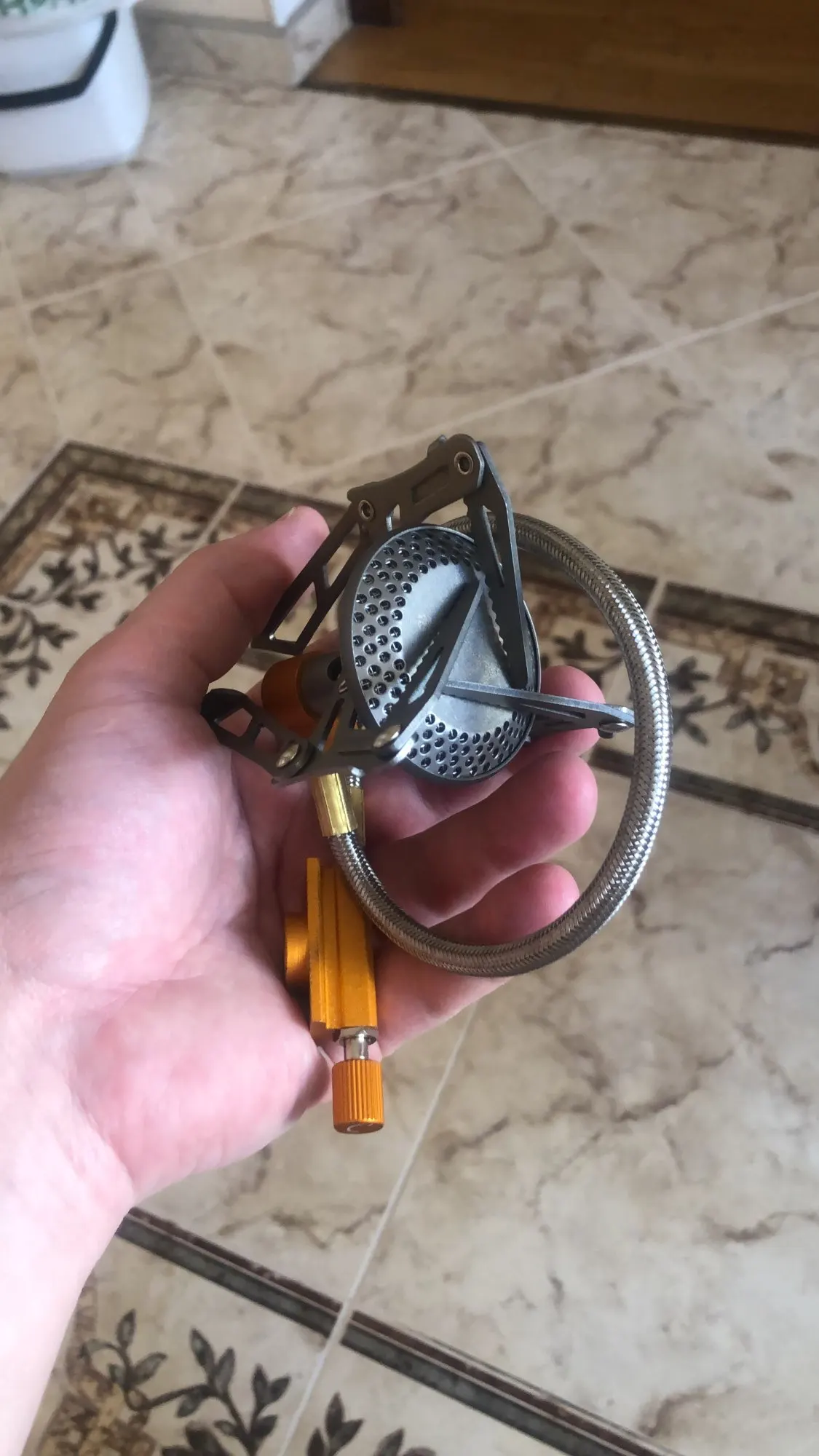 Очень лекгая и компактная горелочка. Работает прекрасно. Тонкая настройка силы пламени. За счет установки на землю, можно использовать с большим котлом, а так же используя переходник можно подключать к более дешевому цанговому баллону. Вес 103 грамма без чехла. Чехол очень плотный, весит 11 грамм.