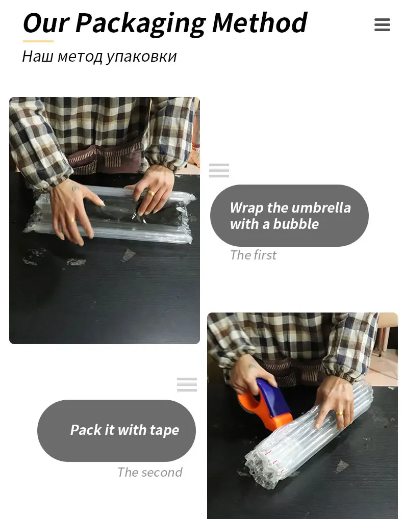 Зонт сам хороший , но вышла проблема. Была сломана ручка. Я написала продавцу и он сразу же согласился выслать новый. Отличный зонт,отличный продавец!!! Рекомендую!!! До Хабаровска первый зонт шёл 16 дней , второй зонт 9 дней.