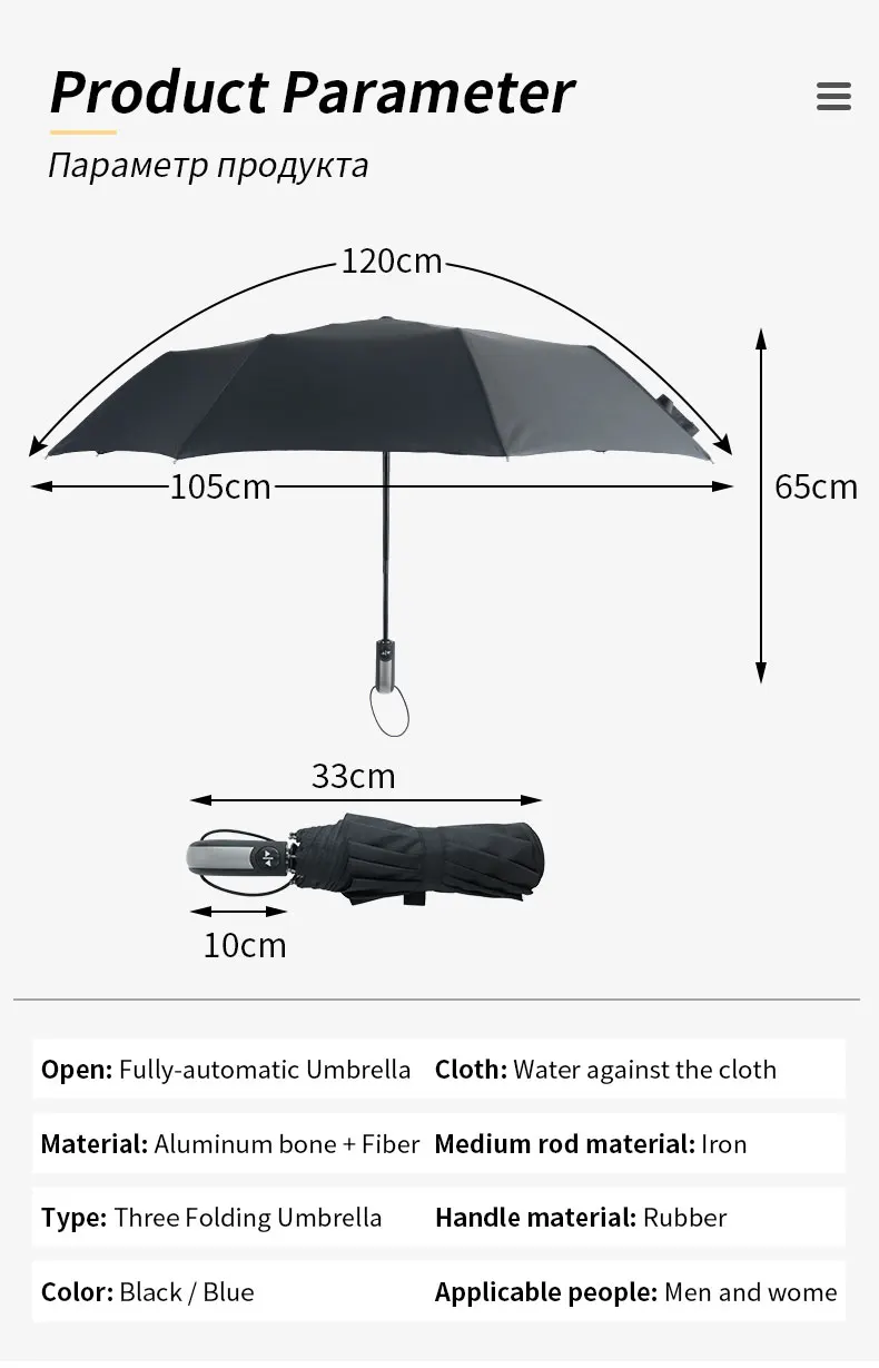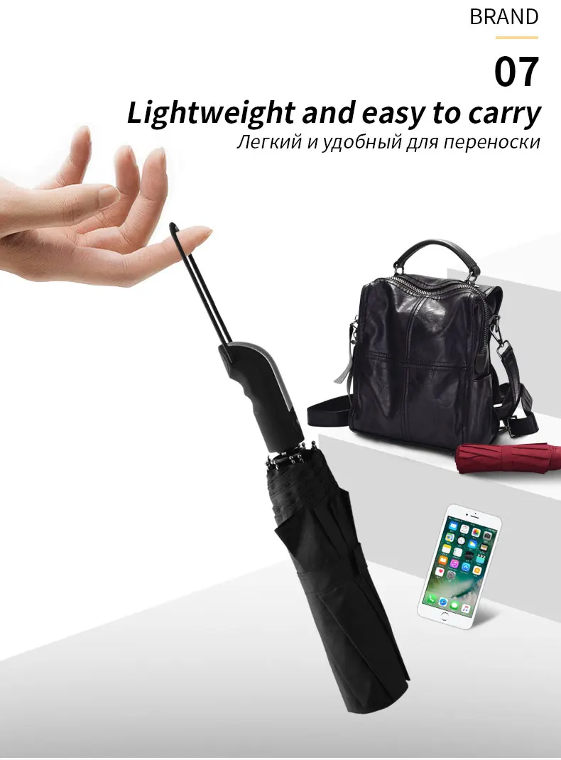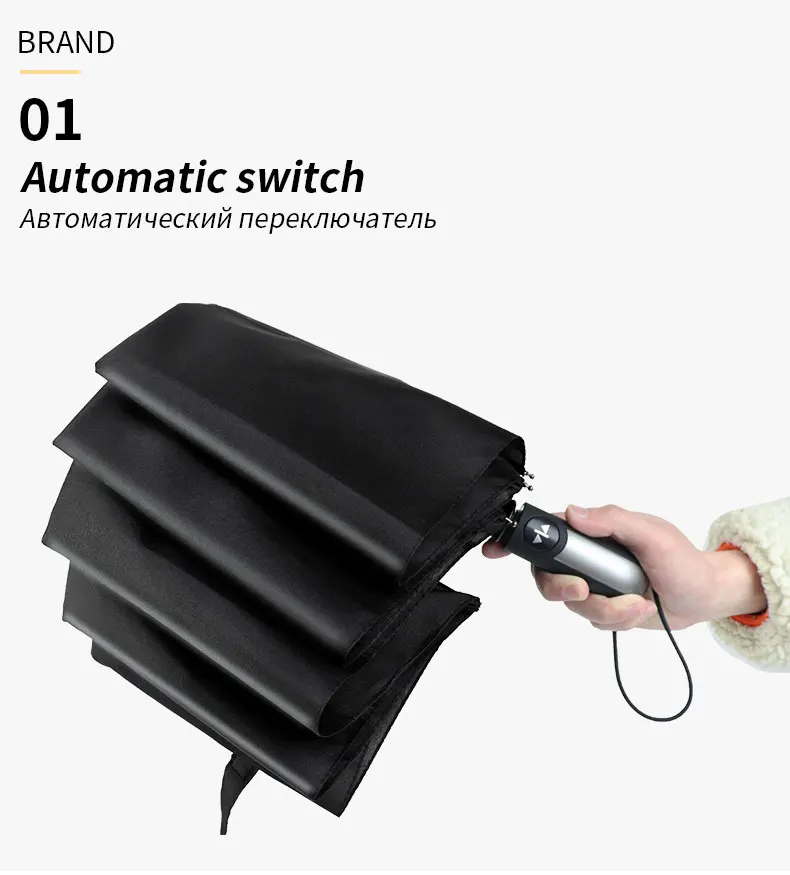 Складной зонт-автомат для женщин и мужчин, большие ветронепроницаемые автоматические зонты от дождя с покрытием черного цвета 10К