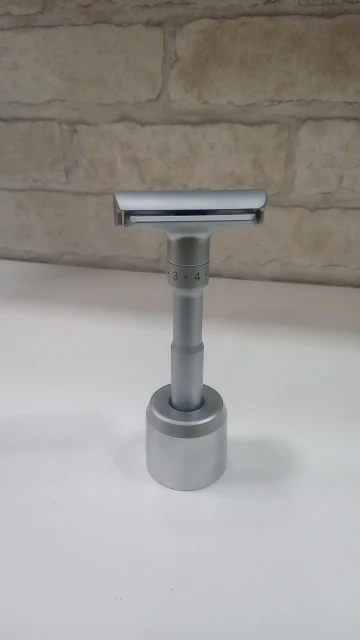 станок хорошо оформлен, с немецким подобным не сравнивал, увесистый, ручка может скользить в руках, после кассетного станка нужно снова привыкать, первое бритьё было кровавым, перепутал в какую сторону крутить ручку и пошёл в сторону увеличения цифр, теперь бреюсь на 1, хватает для бритья на третий день, приятным бонусом коробочка с лезвиями, для комфортного бритья на 4 раза хватило одного лезвия, продавца рекомендую.