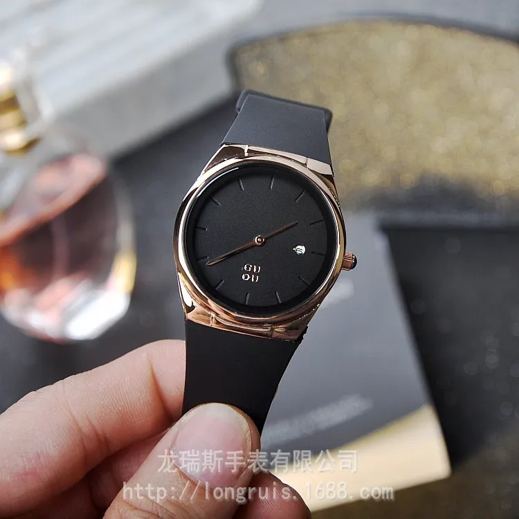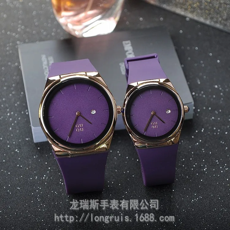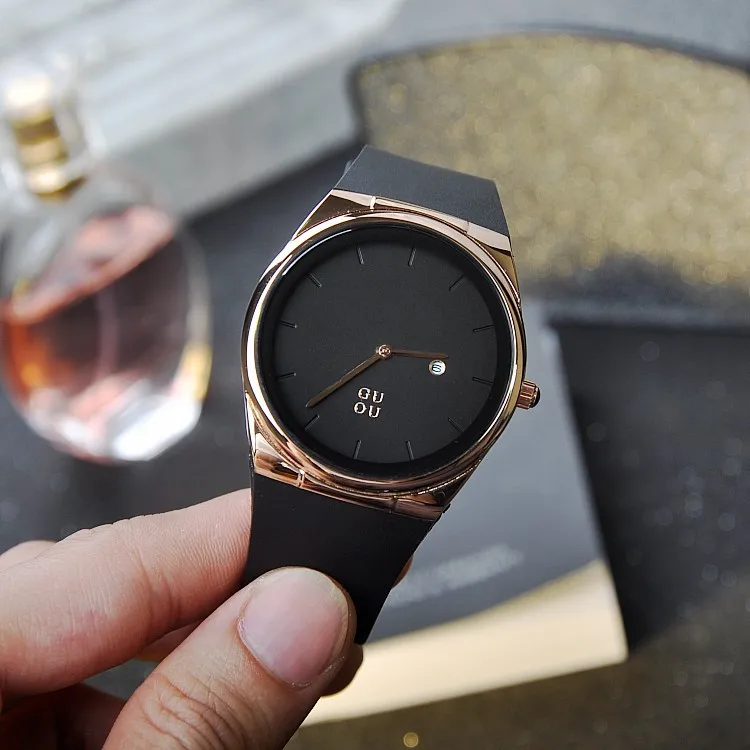 GUOU женские модные простые прочные силиконовые часы с ремешком, часы с календарем в стиле ретро