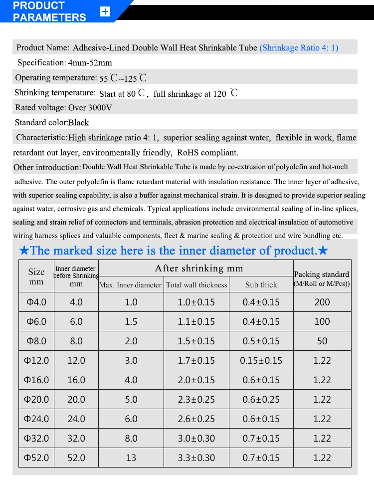 Термоусадочная трубка с клеем, 1,22 млот, 12 мм, 4:1