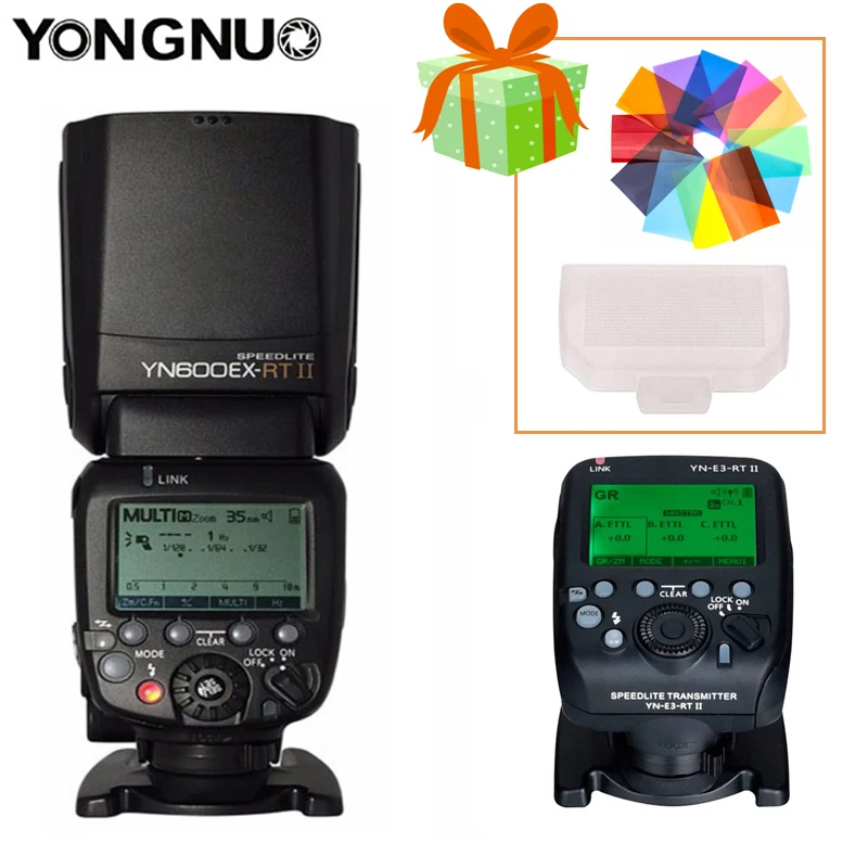 Спецификация: YN-600EX-RT II имеет в точности те же функции, что и для лучшей вспышки Canon 600EX-RT II.Одинаковые функции, одинаковая мощность, даже тот же внешний вид, TTL, HSS, режим Master... но гораздо более низкая цена. Лучшая покупка speedlite для пользователей Canon