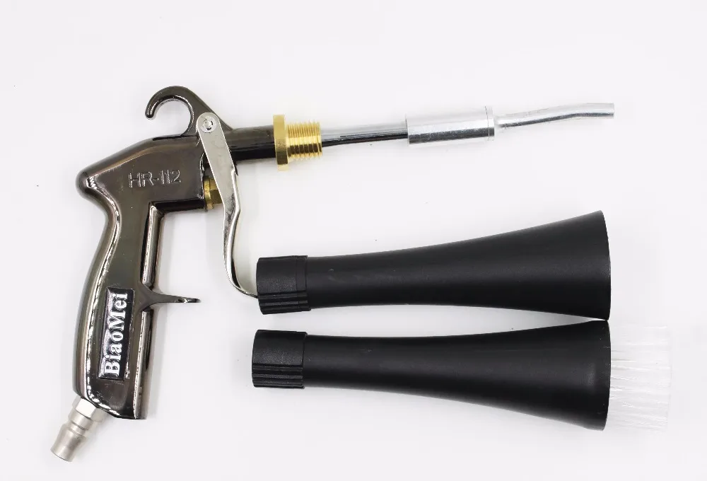 Машина подключена к воздушному компрессору, и она вращается на своей оси на высокой скорости внутри очистительного пистолета трубы круглой трубы воздушного компрессора 0,4-0.9Mpa (58-130PSI) (Оптимальное рабочее давление составляет 0,7мпа, оно не должно превышать 1 МПа). Очищающая жидкость генерирует эффект распыления под сильной центробежной силой, генерируемой высокоскоростным вращением круговой трубы. Распыленная очищающая жидкость прикрепляется к пятну и делает пятна полностью отделенными от поверхности детали. В то же время, привлекают радикальные частицы на трубных насадках для эффективного удаления пятен; Он также может стерилизовать бактерии в автомобиле.