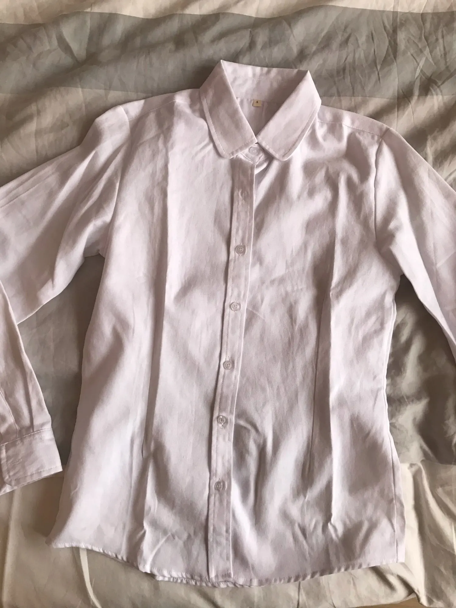 Рубашка белая, ткань хорошая не мнется, только по росту не подошла, смотрите ростовку