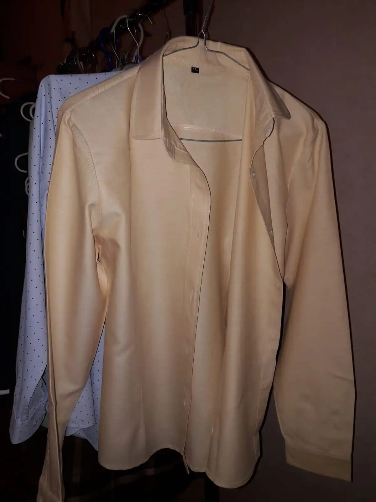 Хорошая рубашка. Есть торчащие нитки и манжет с трудом заастегнула (очень маленькая прорезь для пуговицы), но в целом мне понравилось! Ткань вроде натуральный плотный хлопок. Цвет очень красивый! На ОГ-90, ОТ-74 и ОБ-96 XL рубашка села свободно, но не выглядит оверсайз. Модель узкая, поэтому больший размер будет смотреться как с чужого плеча. Доставка очень быстрая!