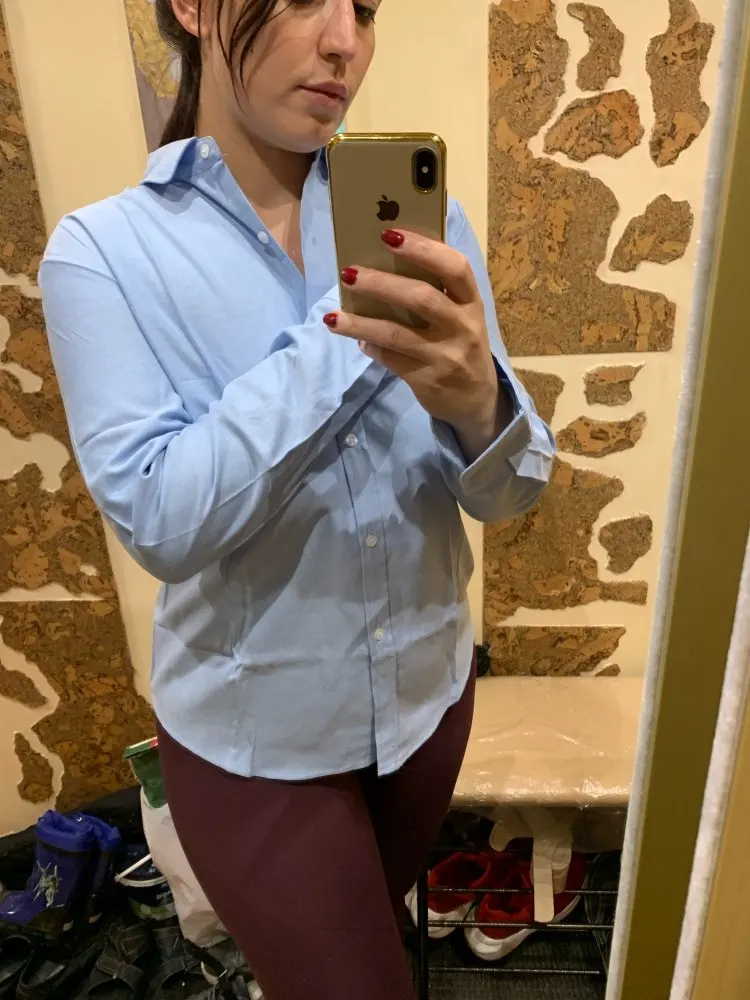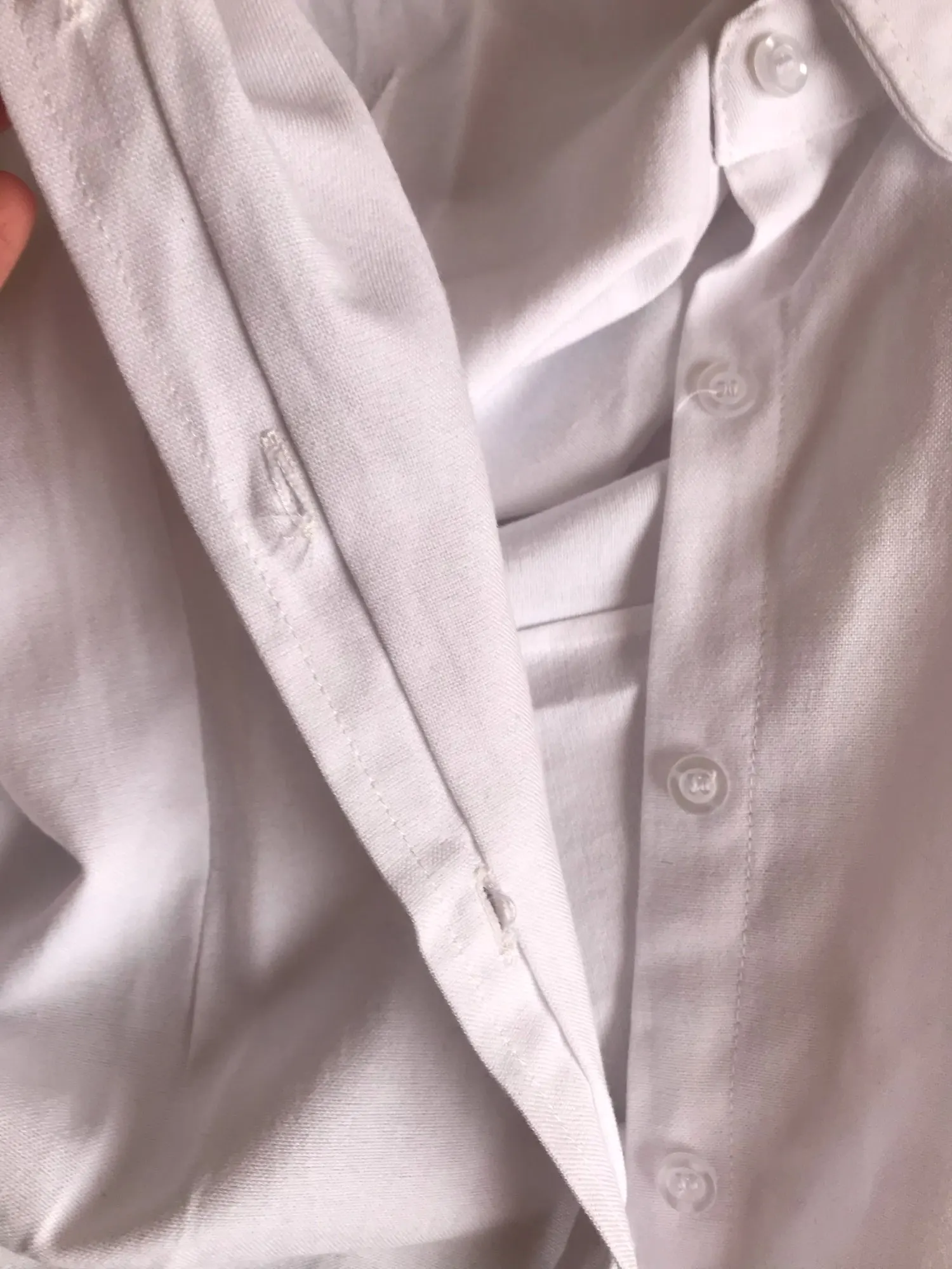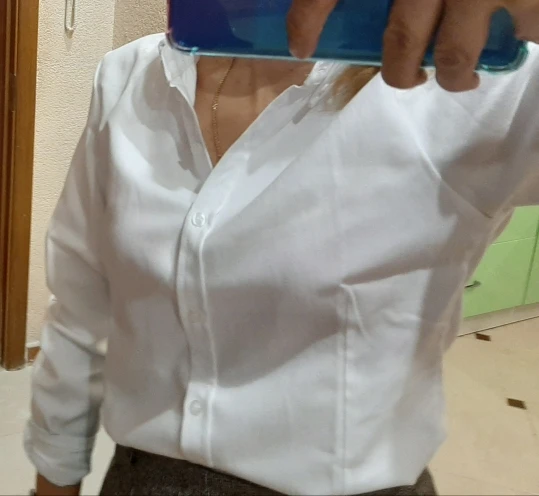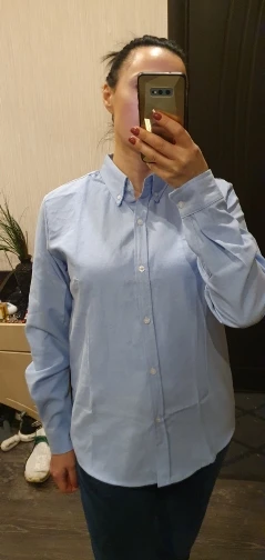 Рубашка супер, ношу обычно М (начиталась отзывав и с дуру взяла Л) если грудь не большая (как в моем случае) берите размер в размер. Очень быстрая доставка, продавец быстро реагирует на заданные вопросы. Плотная, цвет идеально белый, нитки не торчат. Пришлось в кипятке постирать чтобы немного села, до нужного размера