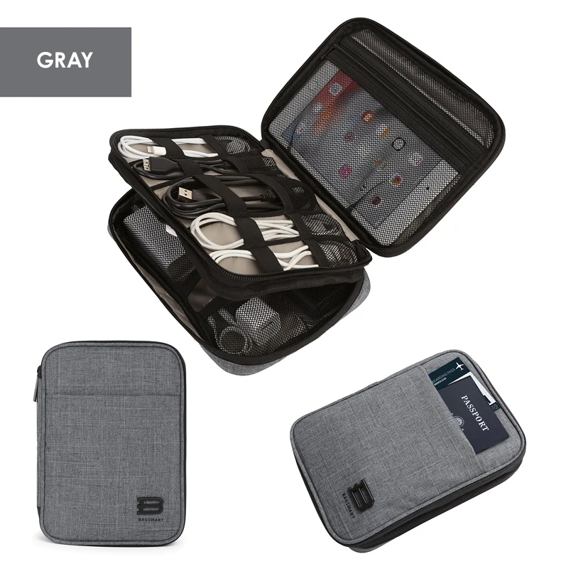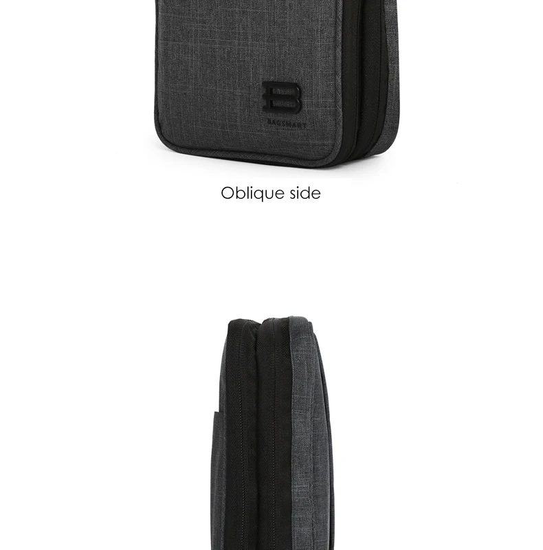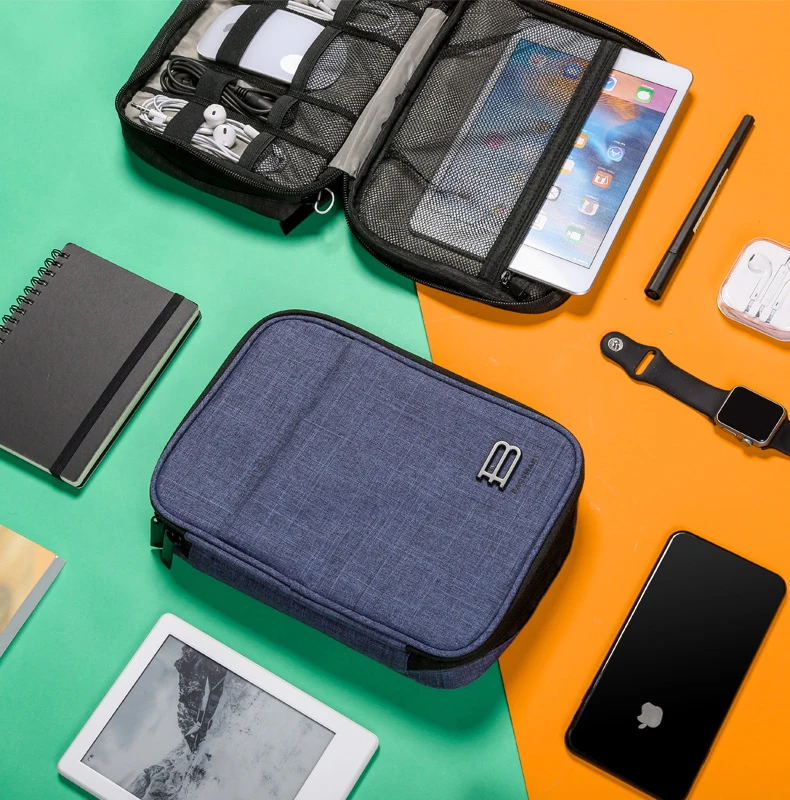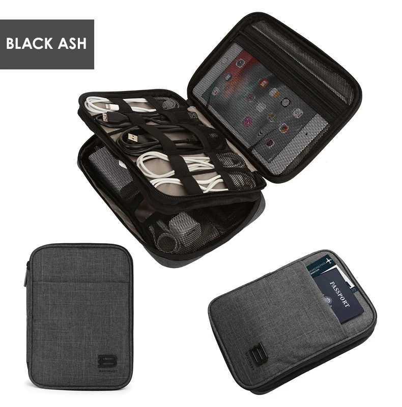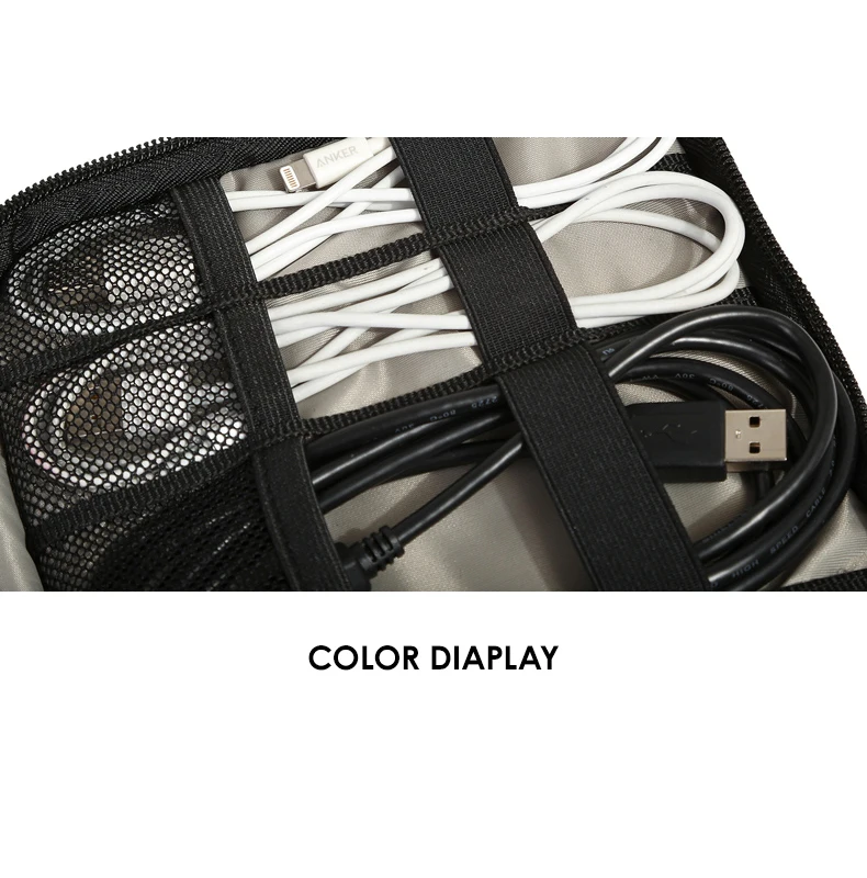 Технические характеристики Размер: 9,4 "Д x 6,5" Ш x 2,5 "в Материал: высококачественный и легкий полиэстер (каждый слой с хлопковой подкладкой из жемчуга для лучшей защиты ваших вещей) Двойной слой с молниями для легкого и быстрого доступа. Применение: iPad mini, Kindle, sd-карты, жесткие диски, наушники, USB, кабели, зарядные устройства и другие аксессуары. Первый слой 5 небольших сетчатых мешков с эластичными петлями расширяются для хранения разных размеров вещей. 5 эластичных петель различной длины для хранения различных кабелей, шнуров и наушников. 1 большой сетчатый карман на молнии может поместиться до вашего Apple iPad mini. Второй слой 5 эластичных верхних сетчатых мешков для больших или громоздких предметов, таких как внешний аккумулятор. 2 средних эластичных петли для сохранения длинных кабелей. 3 специальных отделения для sd-карт, чтобы предотвратить пропуск вашей маленькой sd-карты. Характеристика продукта Многофункциональный дизайн обеспечивает отличную гибкость, чтобы максимально увеличить пространство для хранения. Даже заполнение органайзера может быть легко закрыто. Это делает наиболее эффективным использование пространства для упаковки внутри вашего чемодана или сумки и по-прежнему сохраняет ваши аксессуары аккуратными.