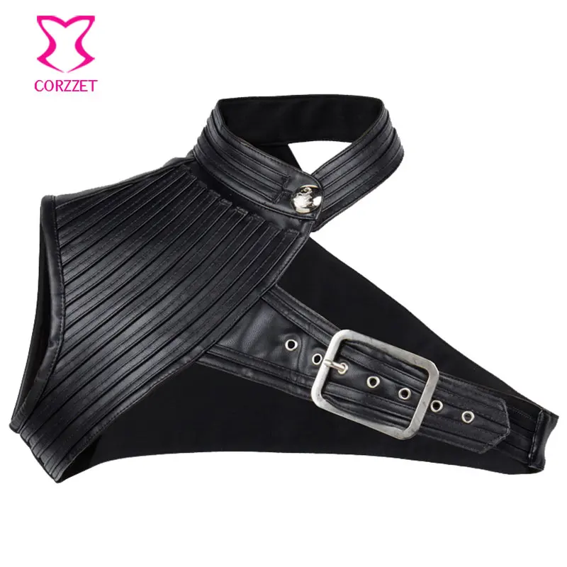 Черная кожаная куртка-корсет на одно плечо с воротником-стойкой в стиле стимпанк, винтажная готическая одежда, аксессуары для костюма Burlesque