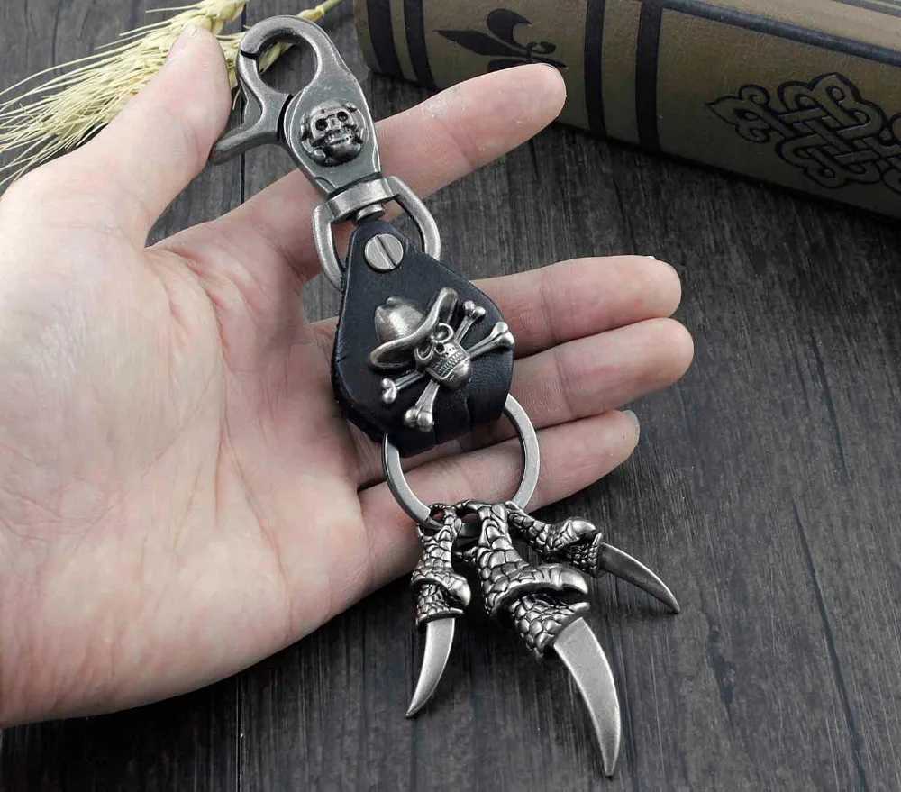 БрелокМеталл: нержавеющая сталь и сплавМатериал: Воловья кожаОсновной Цвет: серебристо-черный