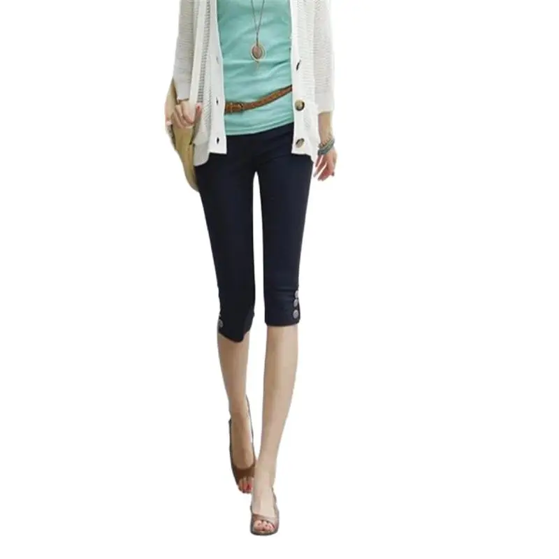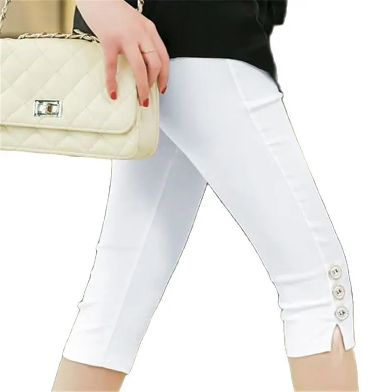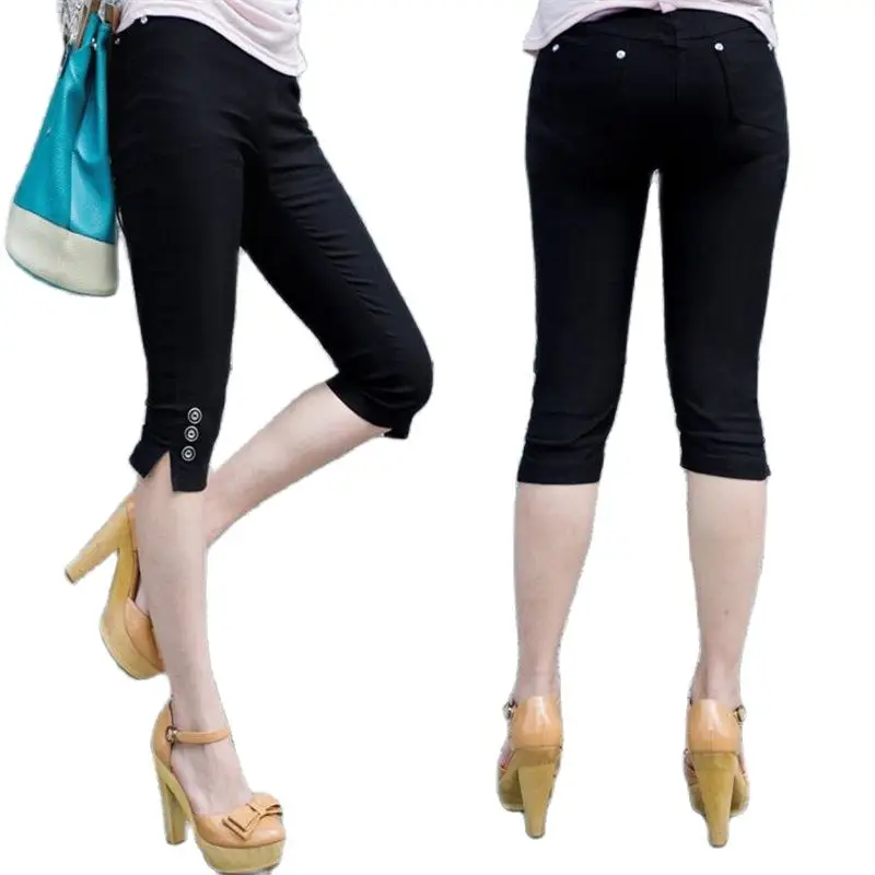 Брюки женские эластичные до колен, повседневные облегающие эластичные леггинсы, карандаш-карандаш, размера плюс, на лето