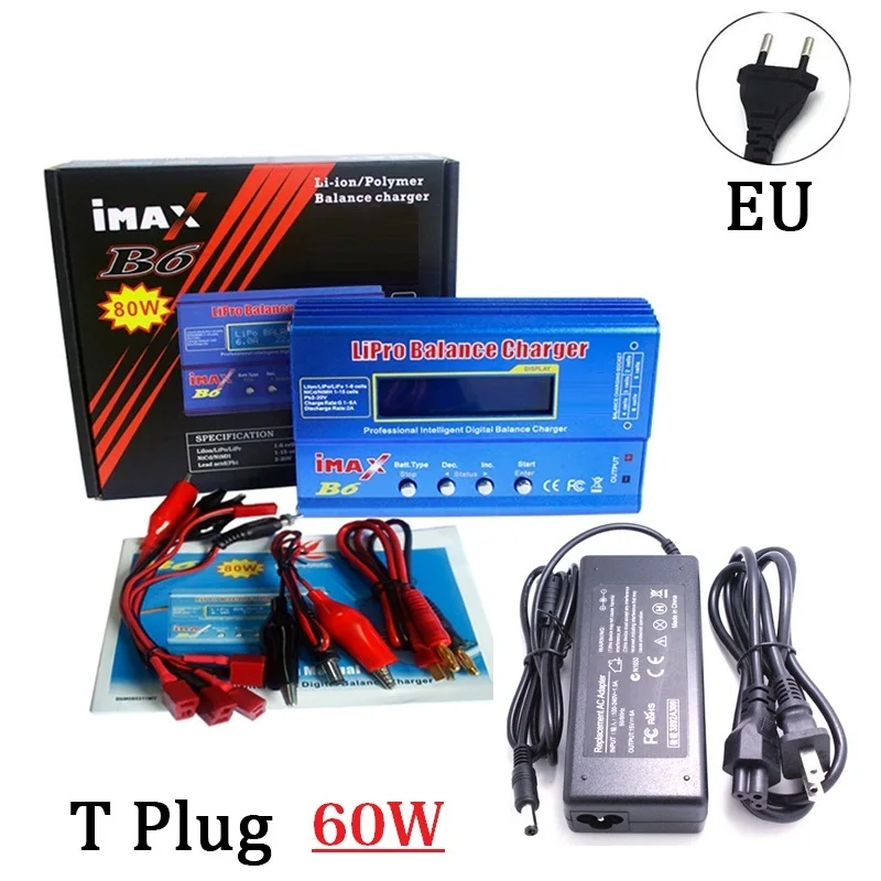 Цифровое Зарядное устройство iMAX B6 80 Вт T PLUG с ЖК-экраном для Lipo NiMh Li-Ion Ni-Cd аккумуляторов + переходник 2-6S XT60 T