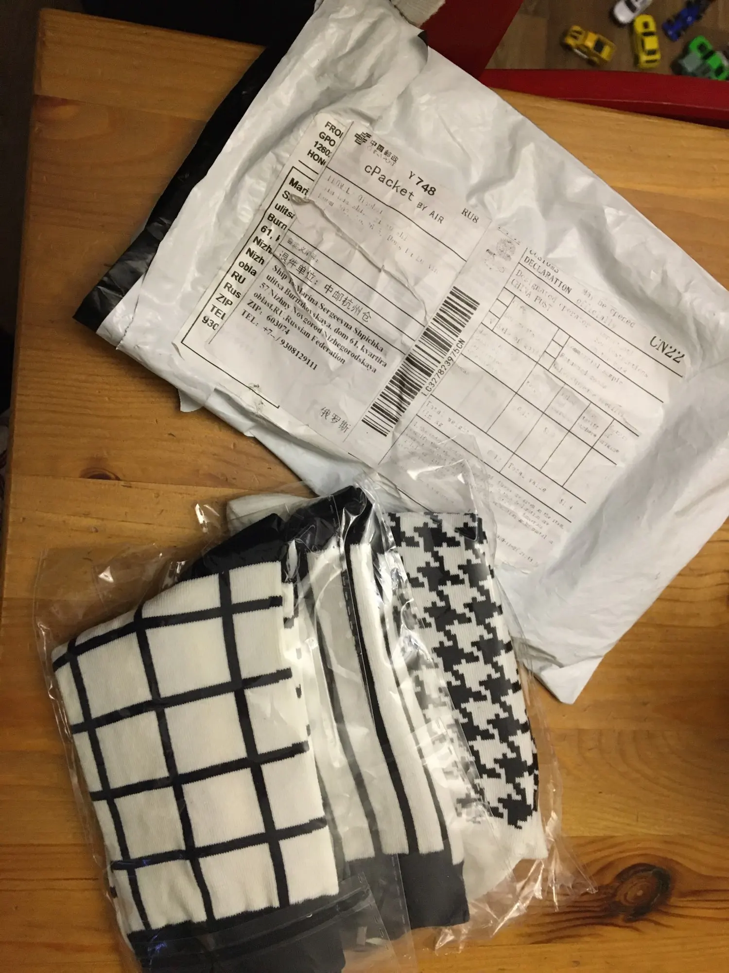 Заказала 4 пары носок. Продавец отправил почтой без отслеживания, хотя я надеялась за эти деньги отправит с треком. Все, что не отслеживается, до меня не доходит. И эти носки ушли к работникам почты россии. Открыла спор, деньги вернули.