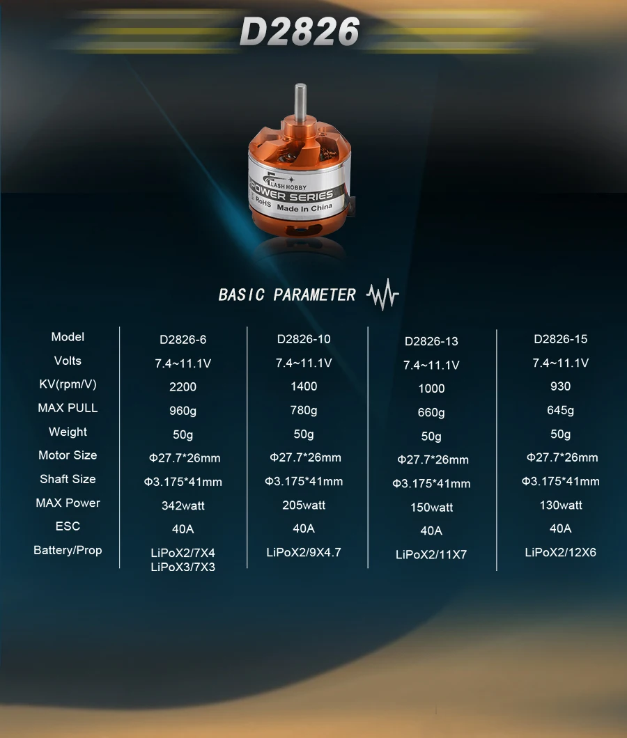 Бесщеточный двигатель FLASHHOBBY D2826 2826 930KV 1000KV 1400KV 2200KV для радиоуправляемой модели лодки и самолета