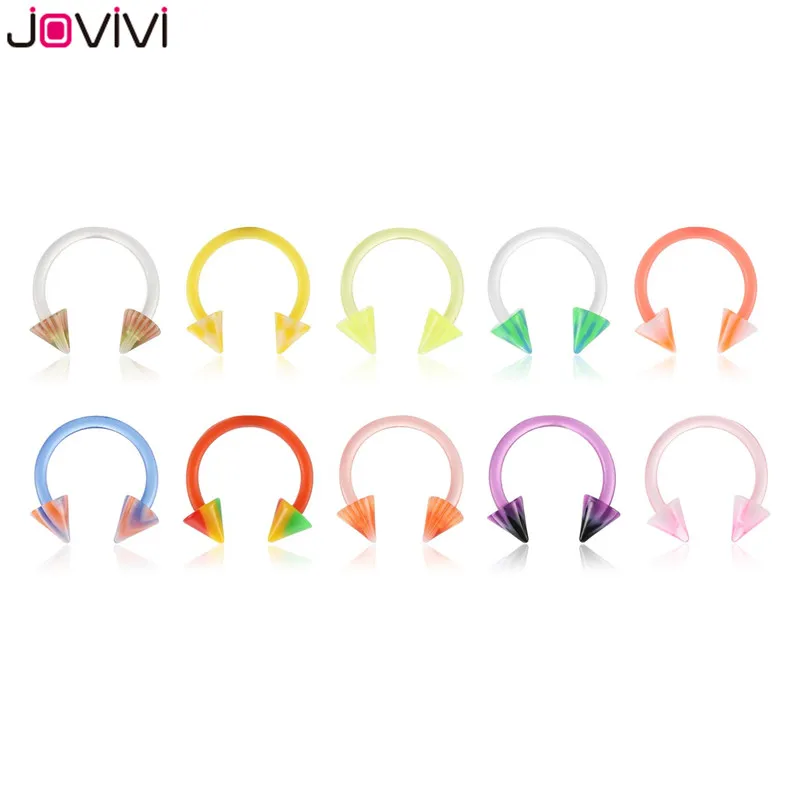 Jovivi кольцо для пирсинга носа, с шипами и заклепками, 16 г, 10 шт.упак. микс цветов