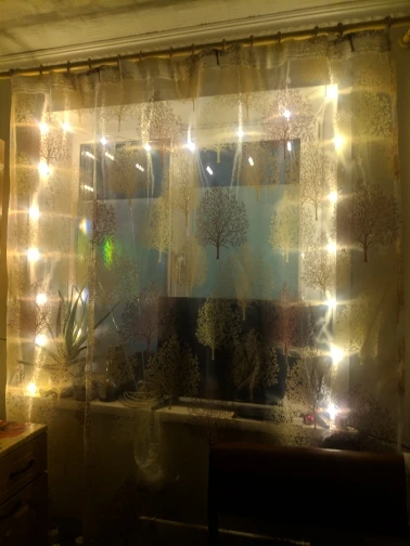Прекрасная шторка, красиво смотрится, на лицевой стороне на каждом дереве есть блестяшки, при ручной стирке они не отвалились. Работа выполнена качественно, все строчки ровные, нитки не торчат. Продавец ответственный, товар отправил через несколько дней, доставка заняла около 2х недель. Меня всё устраивает, спасибо, рекомендую.