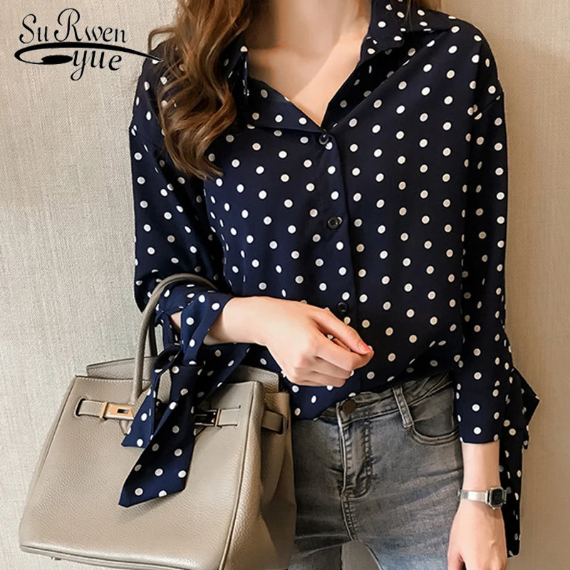 Новое поступление 2018, шифоновая женская с длинным блузка рукавом, рубашка модная с оборками, женские белые черные офисные блузки, женская одежда 8C81