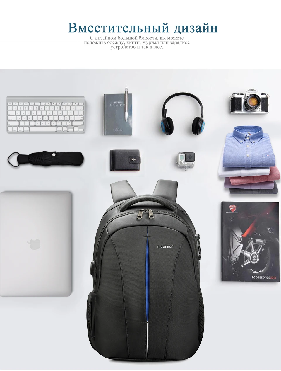 Tigernu USB Классический Стиль Мужчины Рюкзак Студент Рюкзак Сумки Водонепроницаемый 15.6 "Ноутбук Рюкзак Мужчины Рюкзак Mochila Мешок
